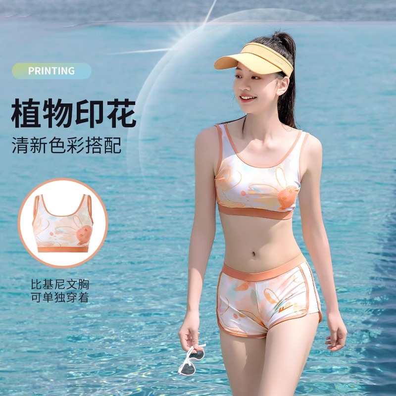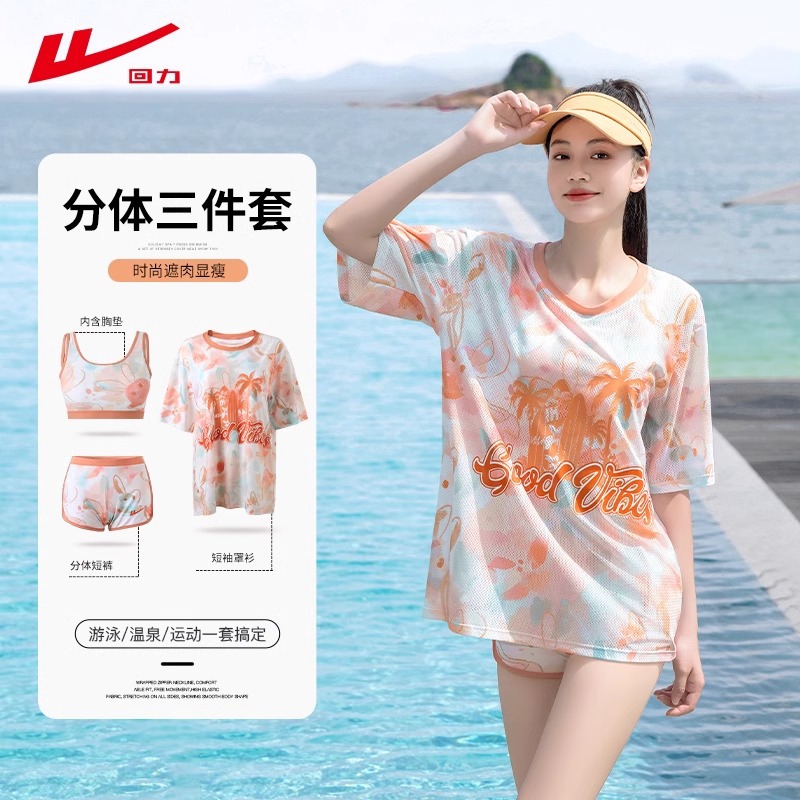 Купальник с откатом женский консервативный комплект из трех частей 2024 новая слегка толстая девушка покрывает мясо и тонкий набор для плавания с горячими источниками