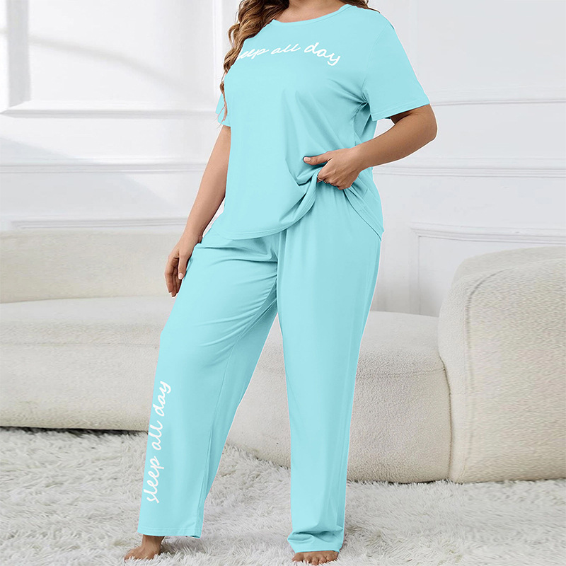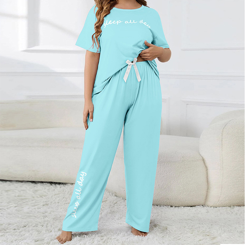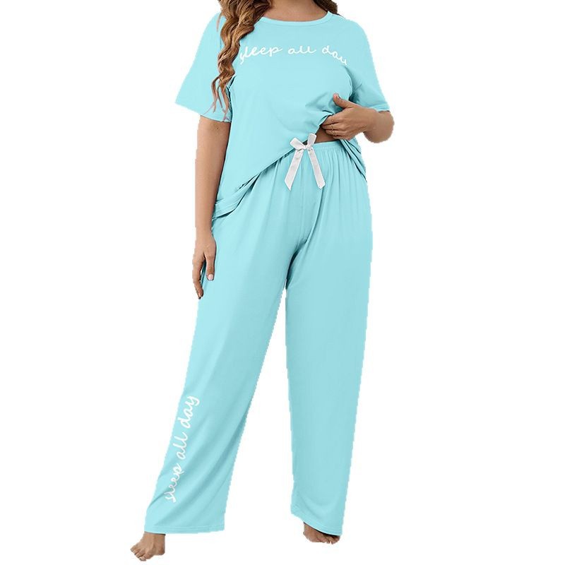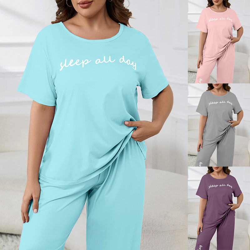 Пижама 2025 весна-лето повседневная большая размерная с принтом букв на шнурке тонкие короткие рукава штаны домашний костюм