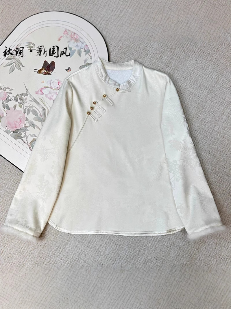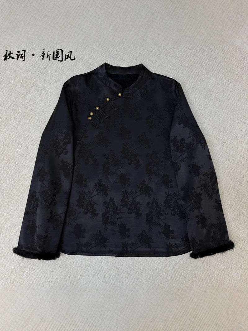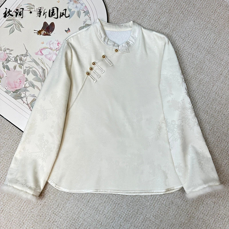 Главная страница > Новая китайская рубашка женский национальный стиль жаккардовый стиль пряжка темпераментный воротник зимний норковый мех бархат теплая нижняя рубашка