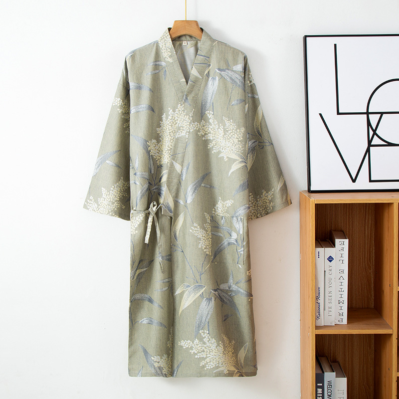 Главная страница > Мужская ночная рубашка из чистого хлопка, двусторонняя жаккардовая летняя тонкая мужская ночная рубашка большого размера 100kg года, двухслойный халат из пряжи, халат-кимоно