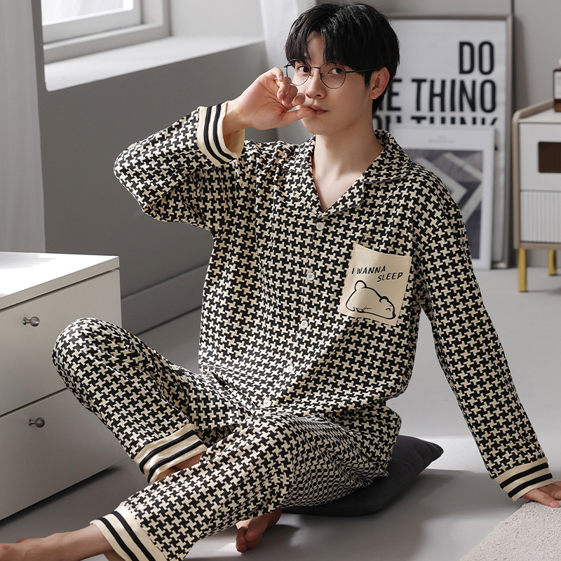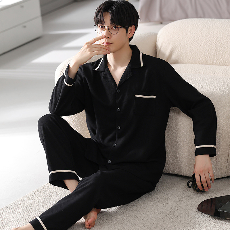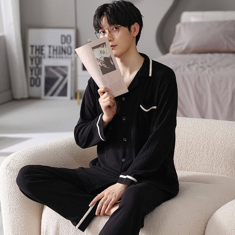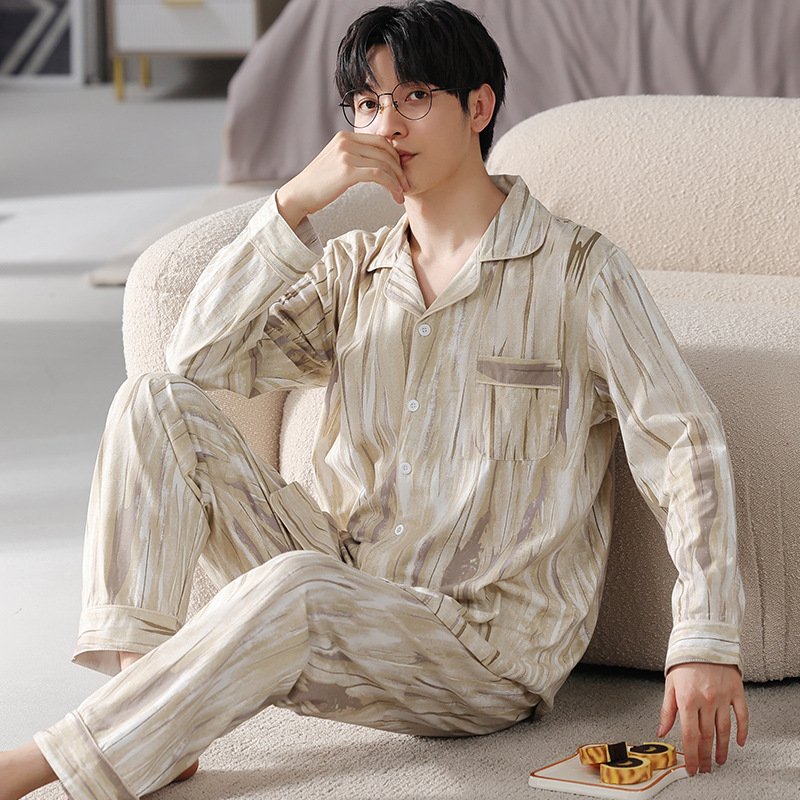 Главная страница > Мужская Пижама весна и осень крутой хлопок с длинным рукавом Тонкая 2023 новая онлайн-знаменитая живая взрывами полосатая Домашняя одежда больших размеров