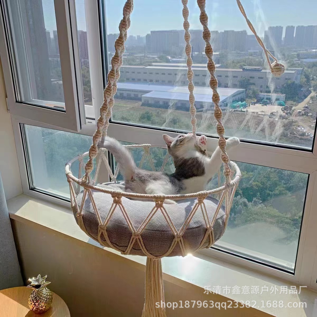Главная страница > Богемный тканый хлопковый канат ручной работы, гамак для кошек, стул, гнездо для кошек, подвесная корзина для кошек интернет-знаменитостей.