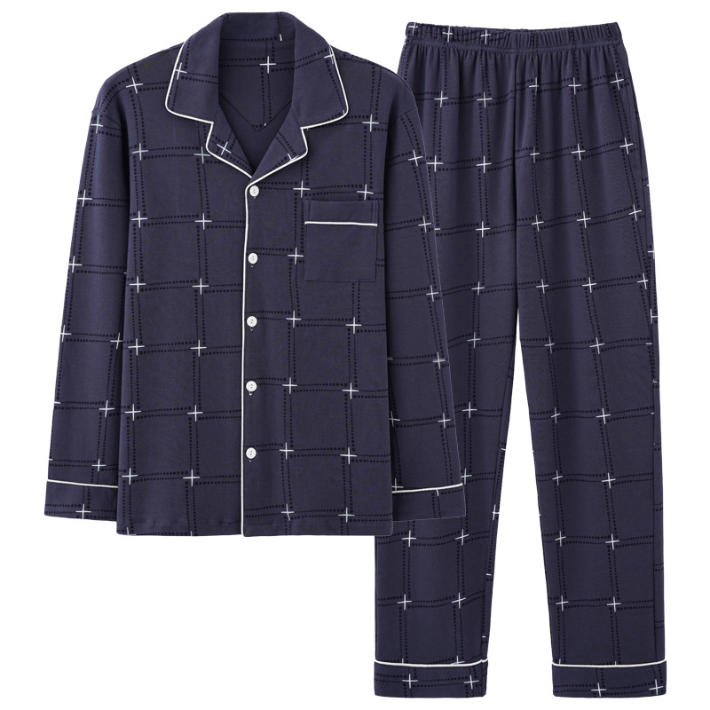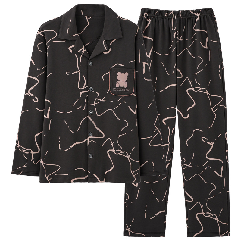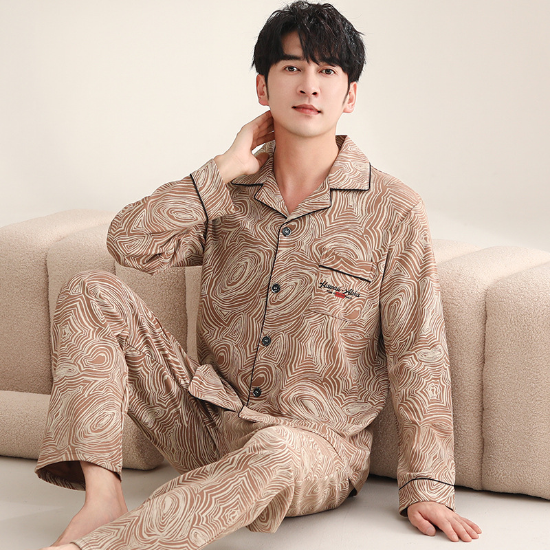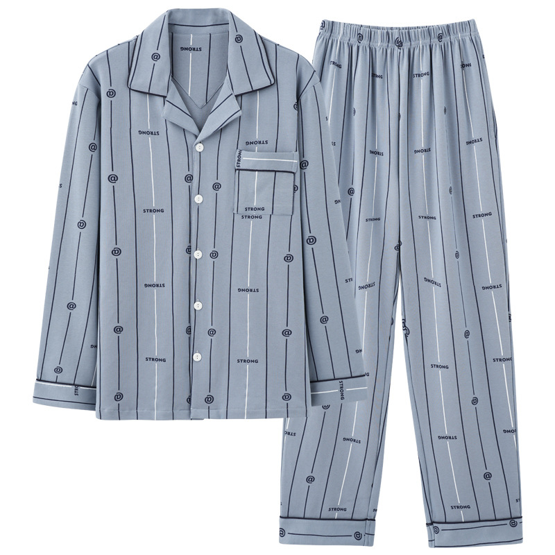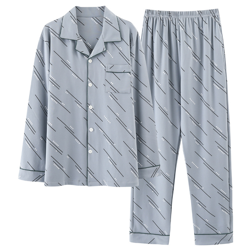 Главная страница > 2024 Новая мужская хлопковая Пижама больших размеров с длинными рукавами, кардиган с лацканами, Повседневная простая Домашняя одежда, костюм