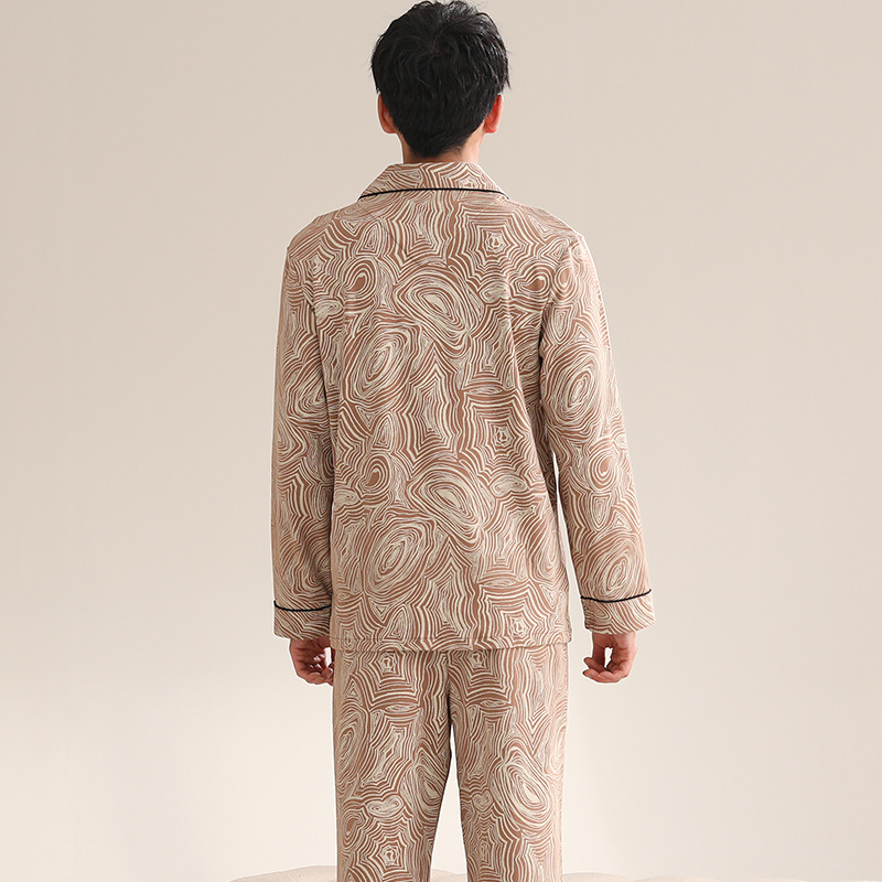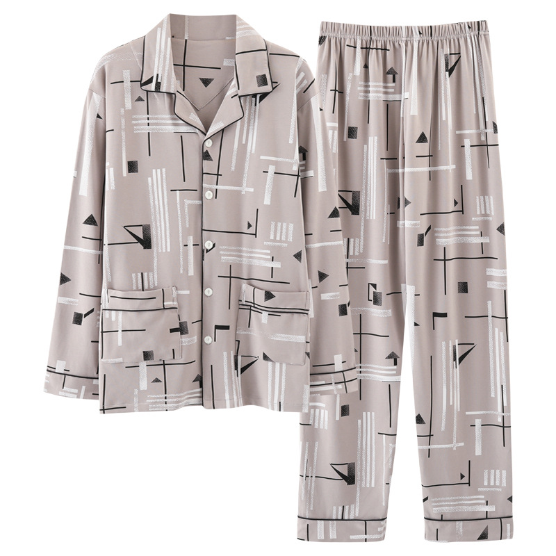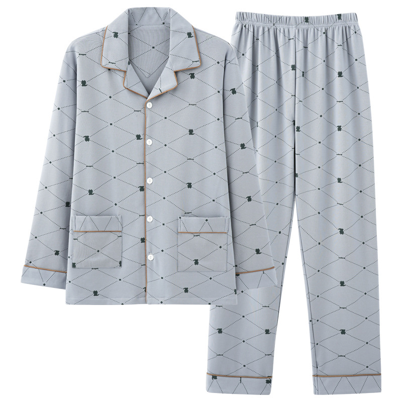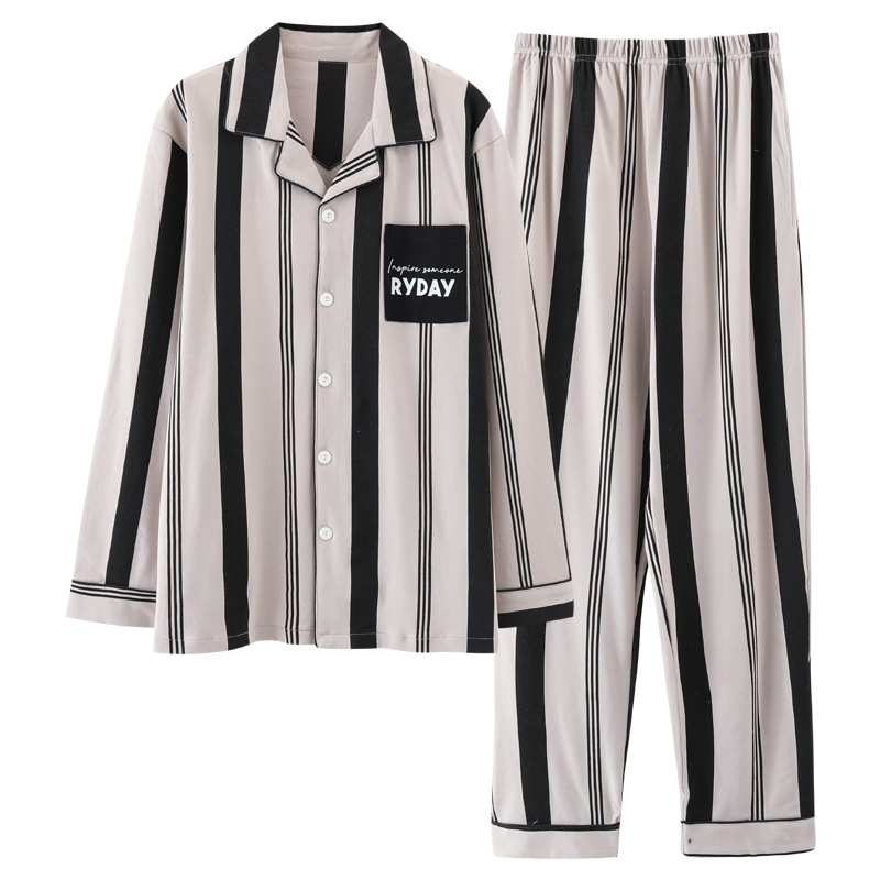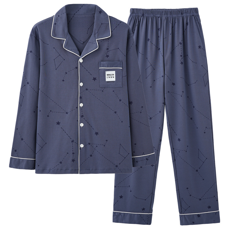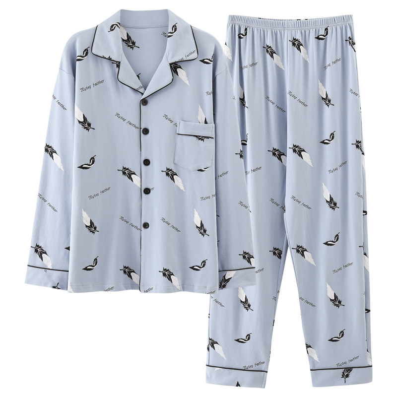 Главная страница > 2024 Новая мужская хлопковая Пижама больших размеров с длинными рукавами, кардиган с лацканами, Повседневная простая Домашняя одежда, костюм
