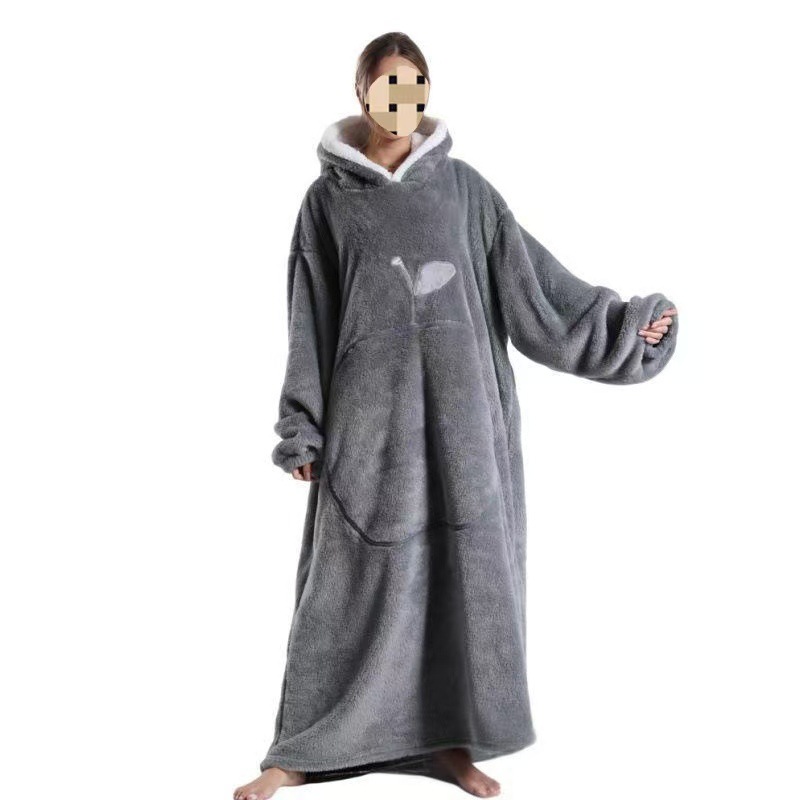 Длинная домашняя одежда Amazon, самое продаваемое носимое ленивое телевизионное одеяло, двусторонняя удобная бархатная ночная рубашка для женщин, осенне-зимняя одежда с длинными рукавами