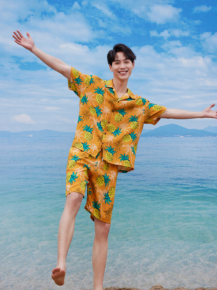 Главная страница > Короткая рубашка с короткими рукавами для мужчин летом Санья Приморский праздник рубашка Гавайские пляжные шорты
