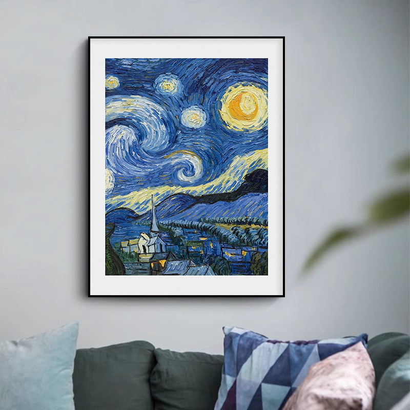 Главная страница > Ван Гог работает Star Moon Night Ресторан спальня прикроватная роспись крыльца Современная минималистская гостиная диван фоновая настенная декоративная роспись