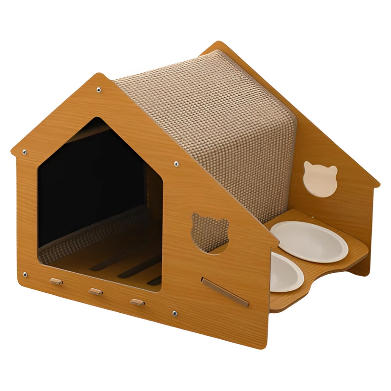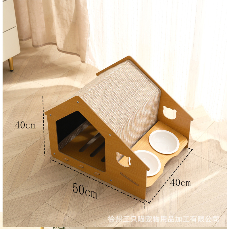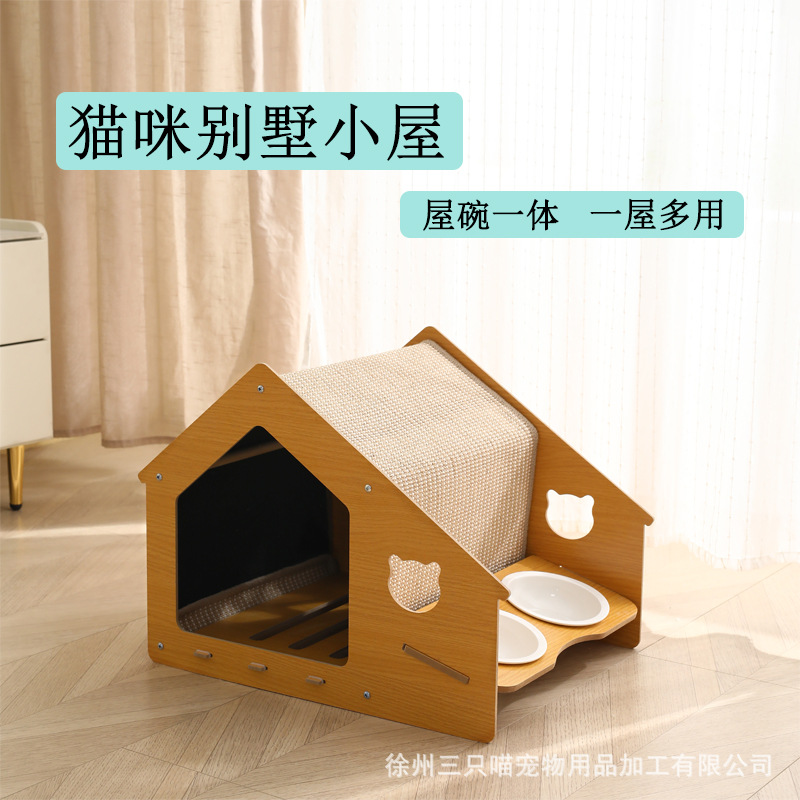 Кошачий домик, летний закрытый компактный кошачий домик с миской, кошачья вилла, когтеточка, собачий домик, съемный и моющийся для всех сезонов