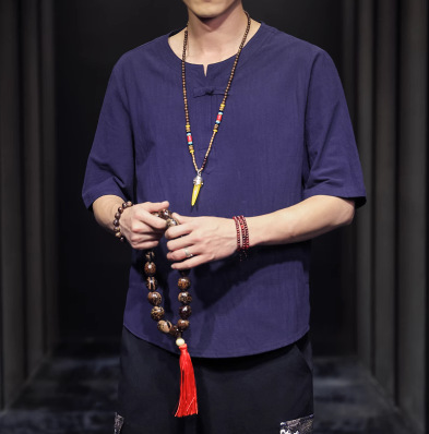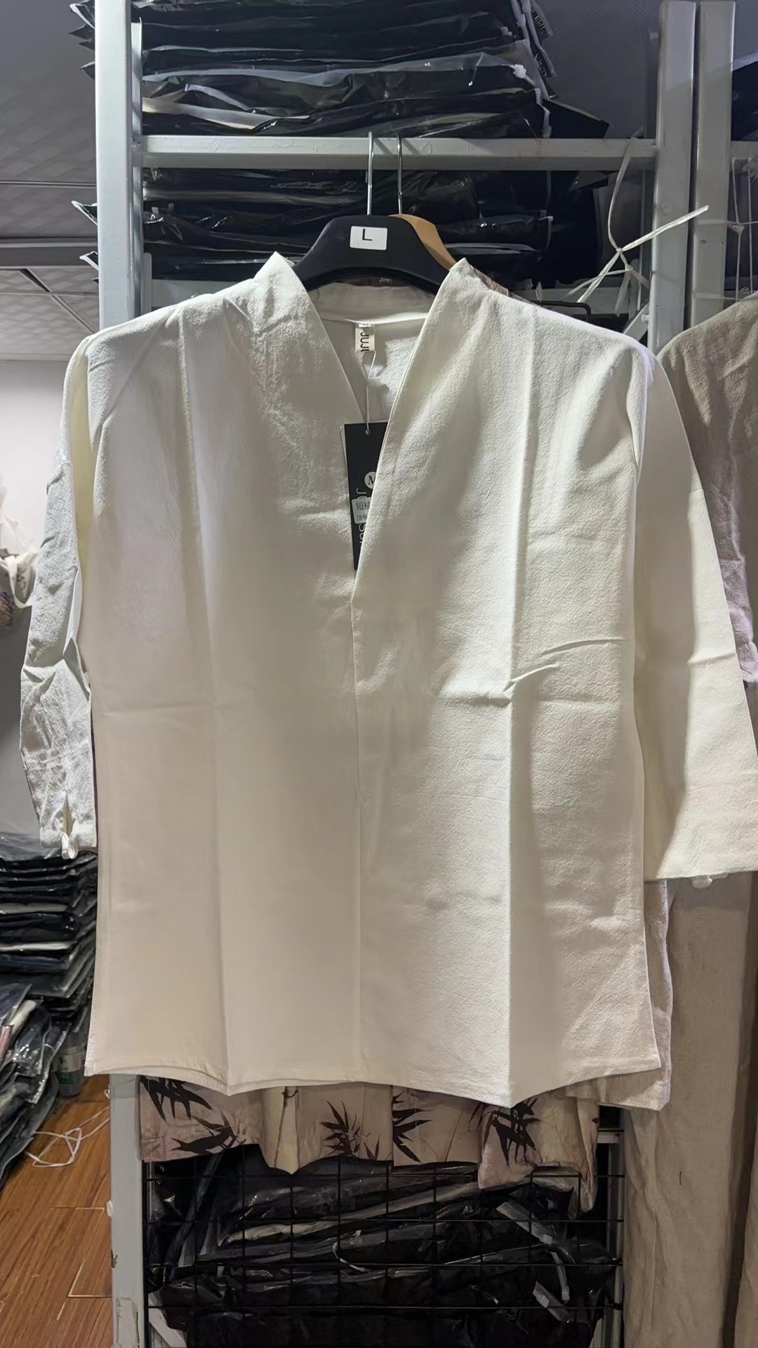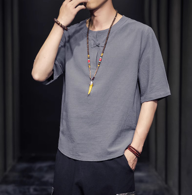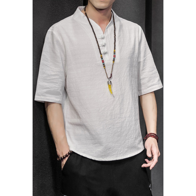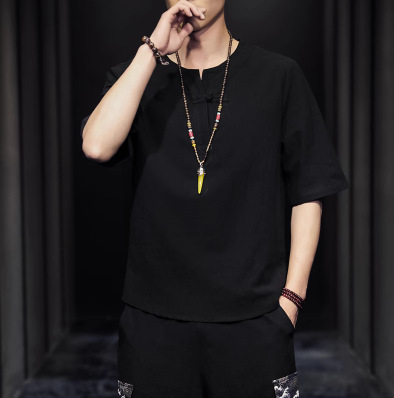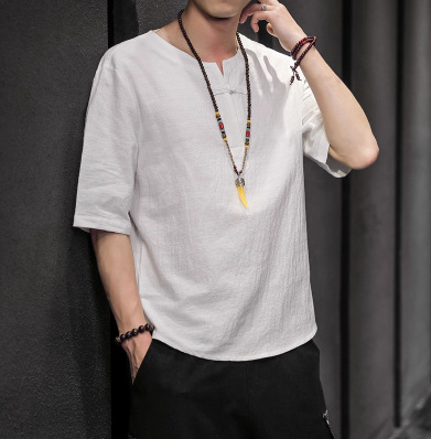 Главная страница > Мужская летняя футболка, летняя хлопковая льняная рубашка с короткими рукавами, большие размеры, мужской топ из пяти предметов с рукавами