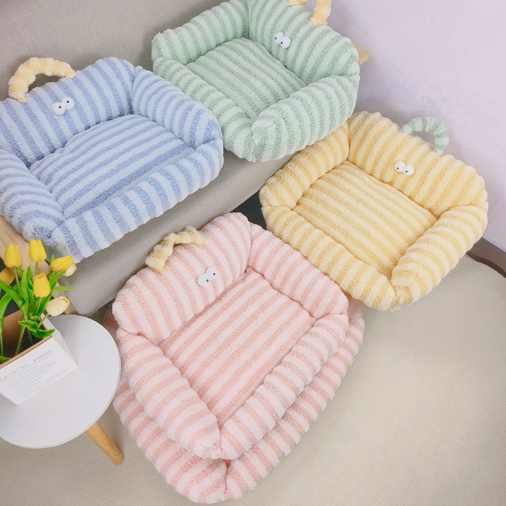 Клетка для животных с большими отверстиями для глаз, длинная вельветовая лежанка для животных цвета фруктозы, лежанка для кошек, диван для собак, хлопковая лежанка, лежанка для животных, утолщенная и теплая.