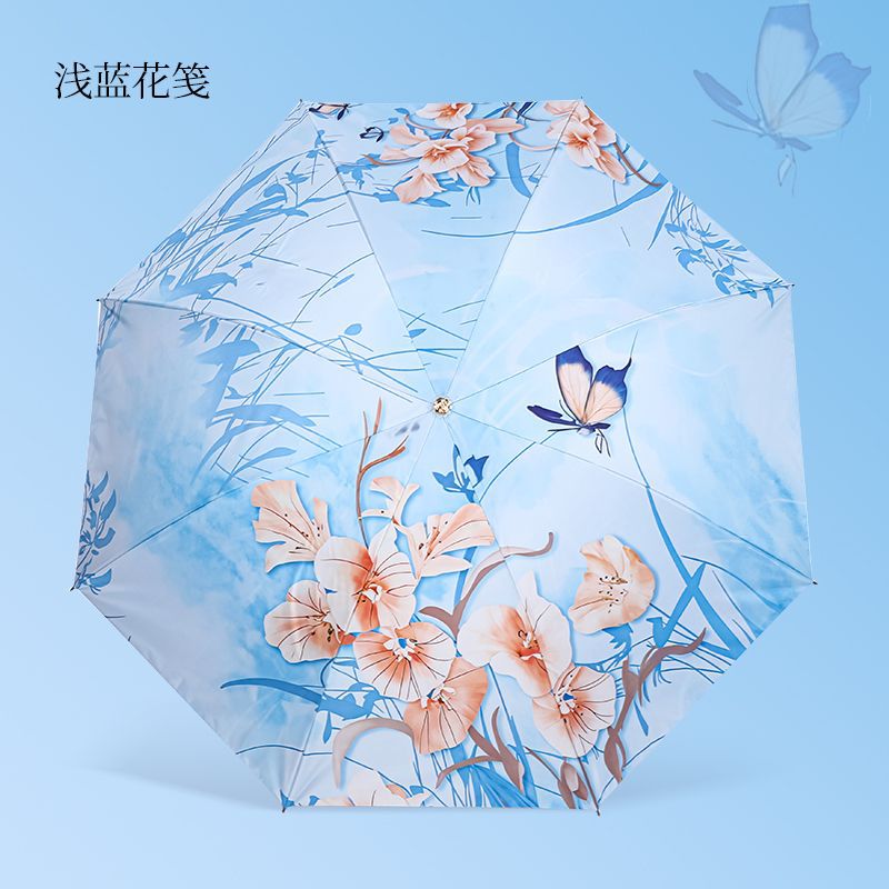Ручной [светло-голубая цветочная бумага] двухслойный солнцезащитный крем с черным клеем поставляется с сумкой для зонтика 70% off восемь костей