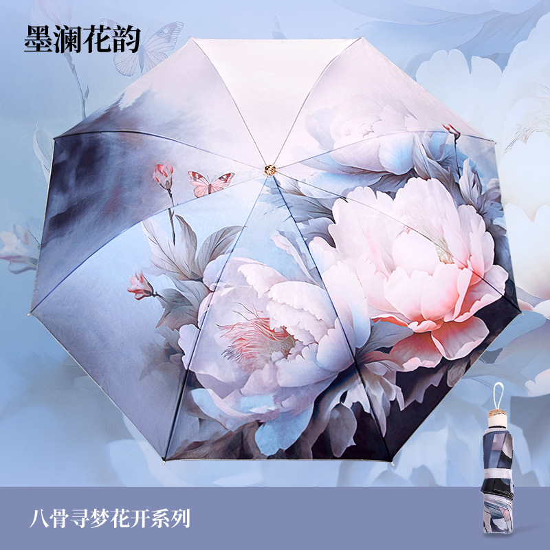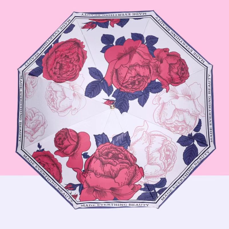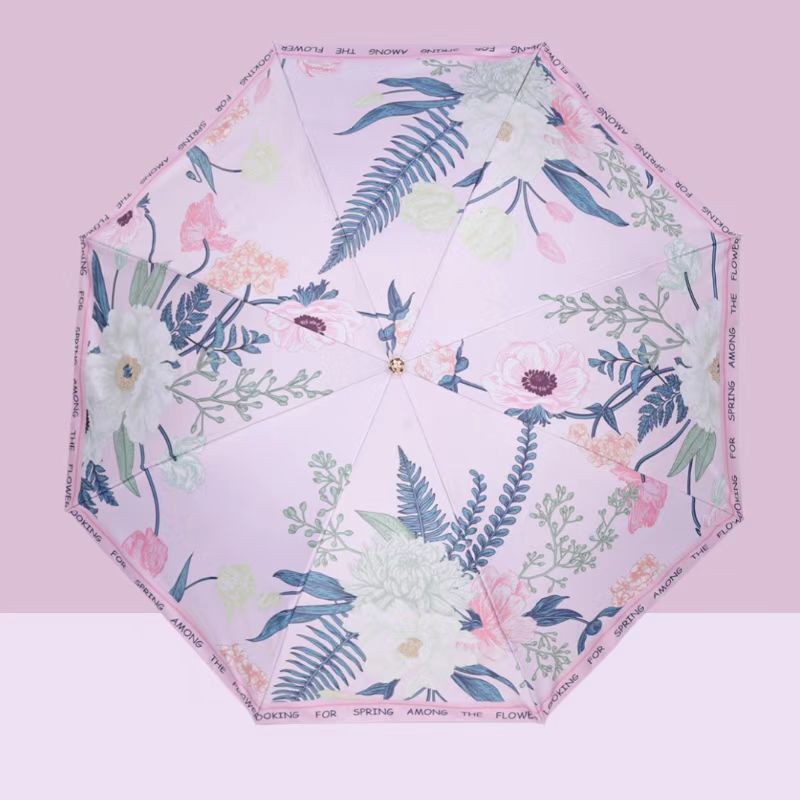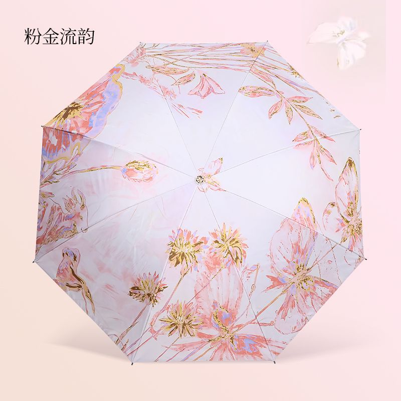 Руководство [Pink Gold Flowing Rhyme] Двухслойный виниловый солнцезащитный крем поставляется с сумкой для зонтика 70% off Eight Bones