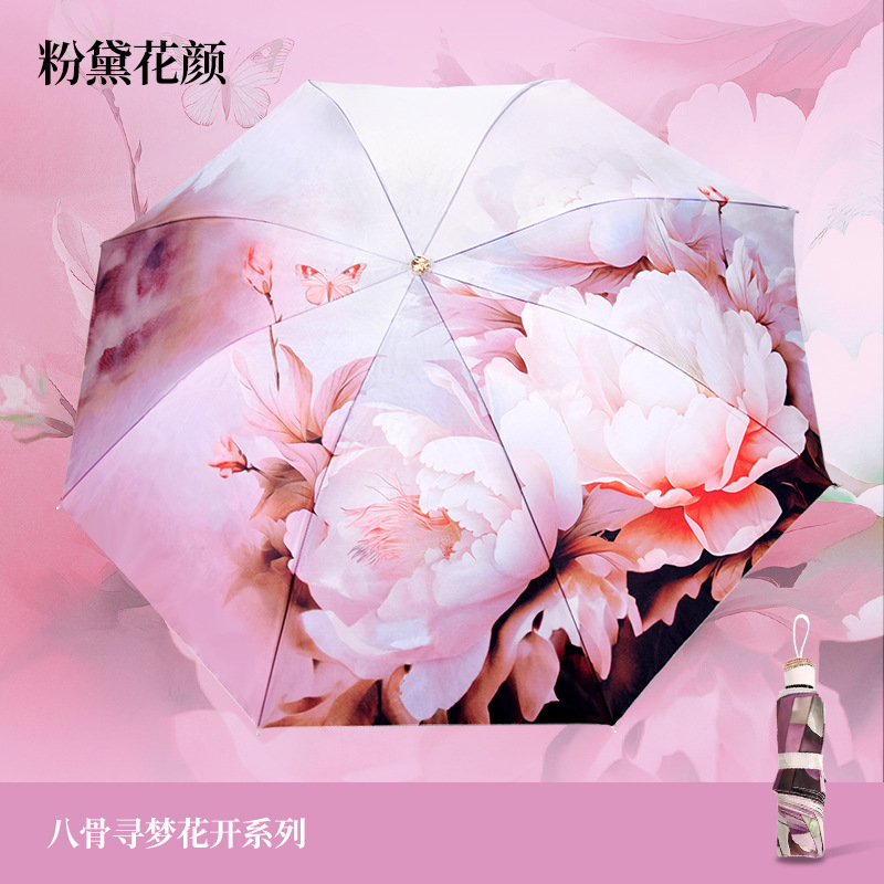 Ручная [розовый аромат] двухслойная виниловая сумка для зонта с защитой от солнца 70% off восемь костей