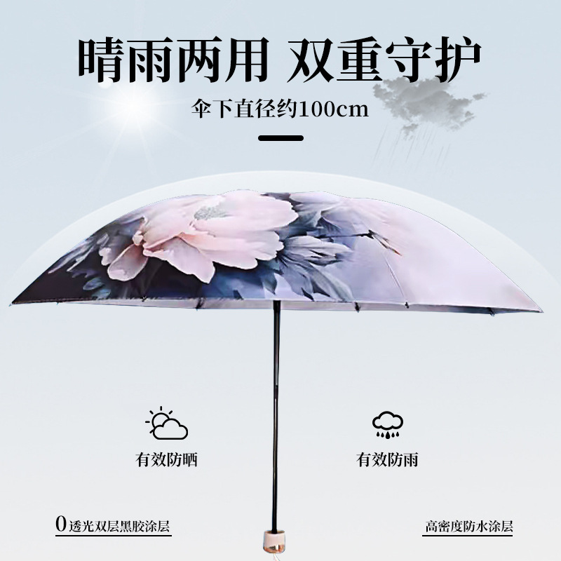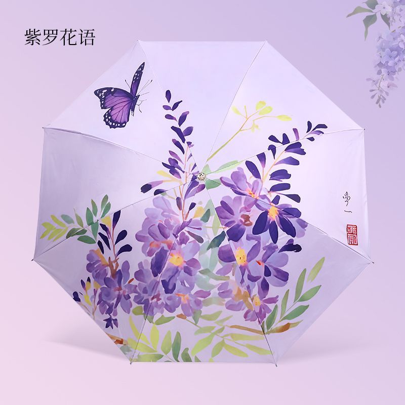 Руководство [Язык фиолетового цветка] Двухслойный виниловый солнцезащитный крем, бесплатная сумка для зонта 70% off Восемь костей