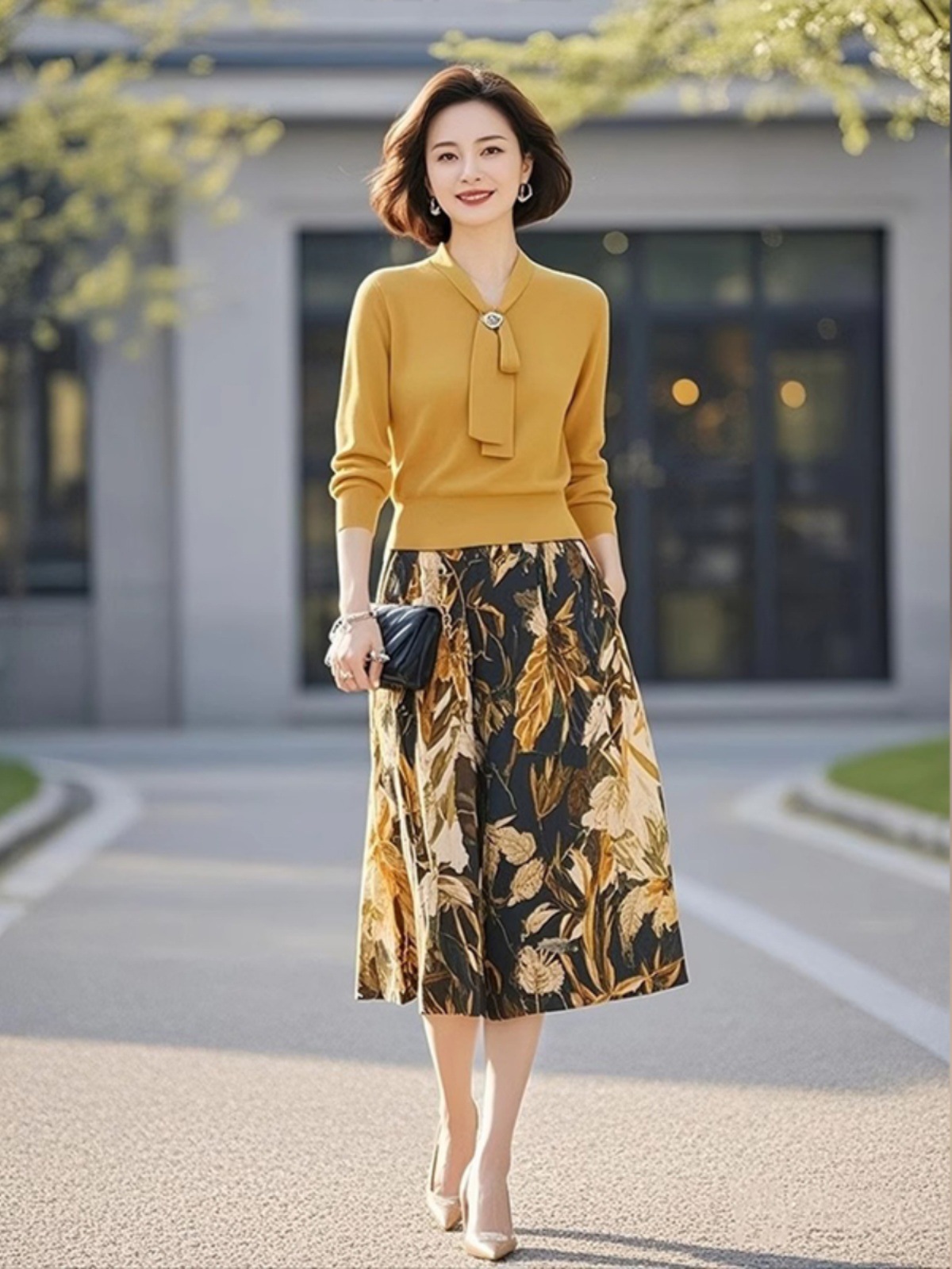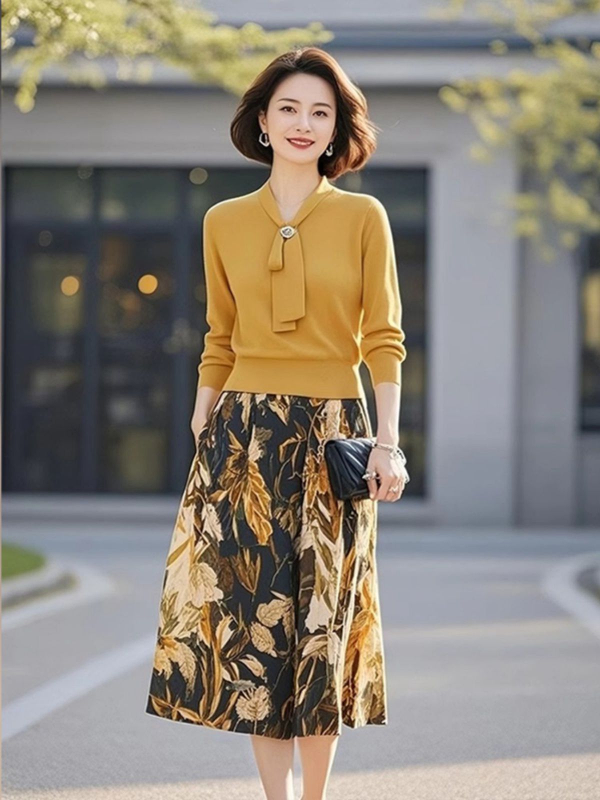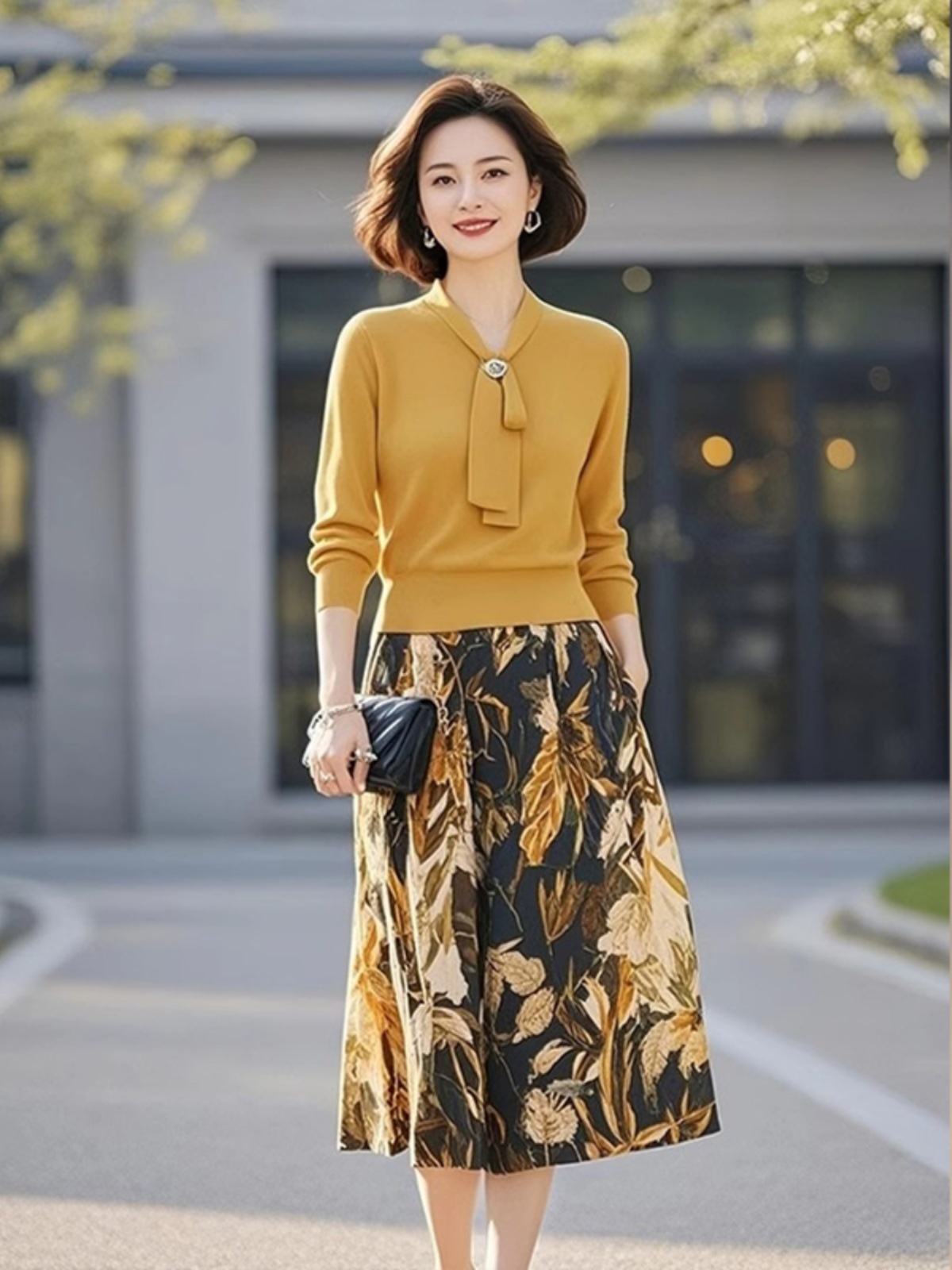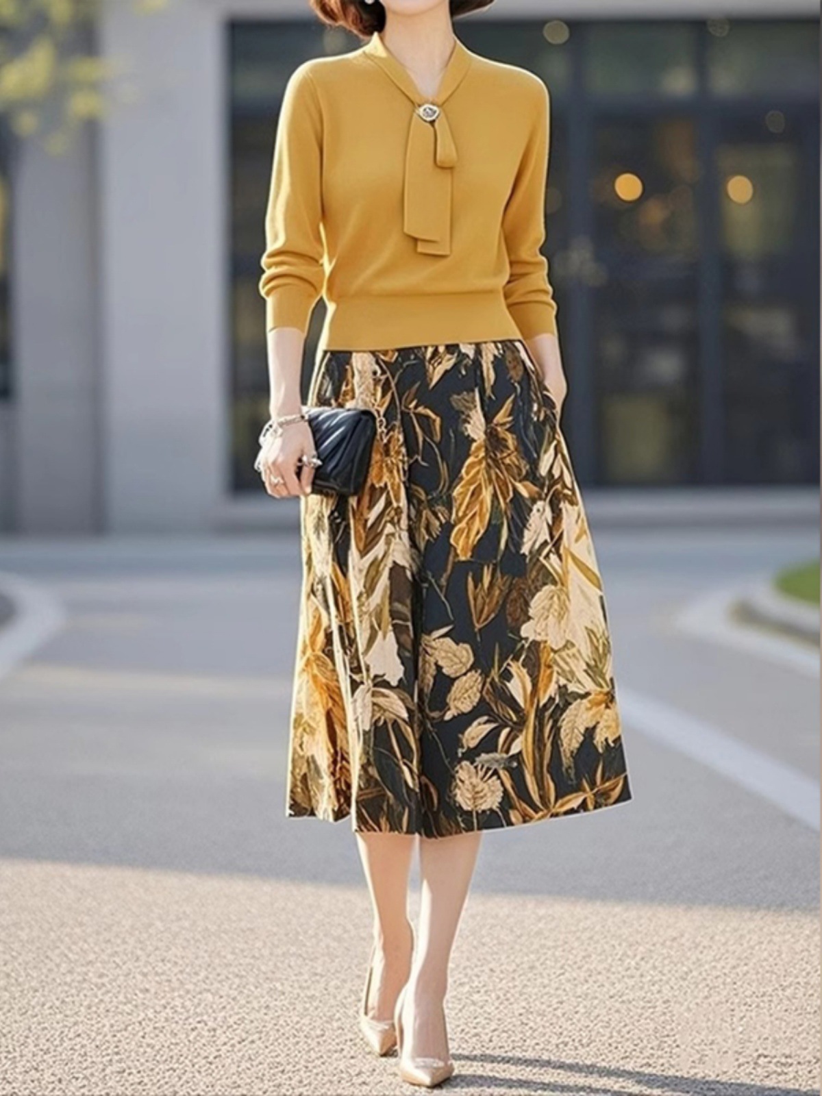 Главная страница > Желтый трикотажный костюм 2025 женская весна новый продвинутый оттенок шнуровка с принтом юбка из двух частей
