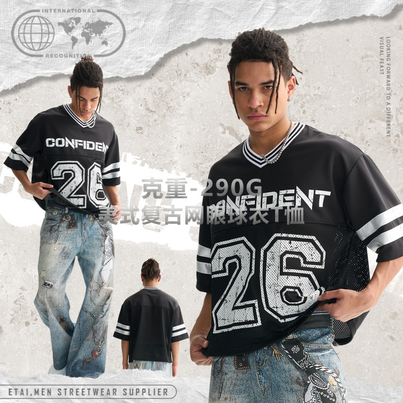 Главная страница > Мужская одежда Etai | Короткая и широкая футболка в американском ретро-стиле, высококачественная модная брендовая футболка с цветовыми блоками, мужская футболка с коротким рукавом.
