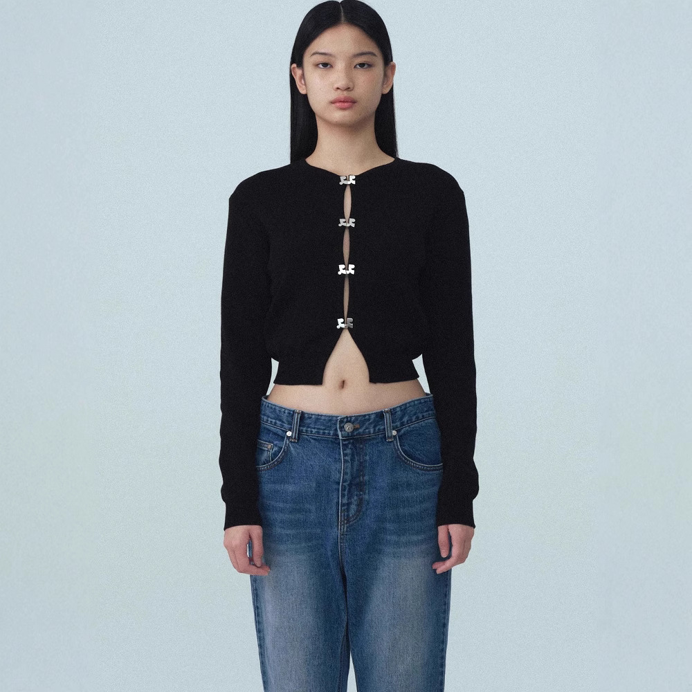 Главная страница > Корейский restandrecreation двойной R вязаный кардиган куртка женский RR тонкая пупок короткий топ