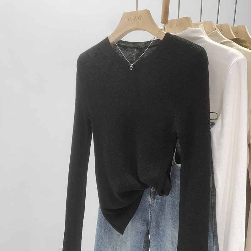 Главная страница > Кондитерский цвет мяты с зеленым круглым вырезом трикотажная нижняя рубашка женская весенняя и осенняя стройная модель с длинными рукавами