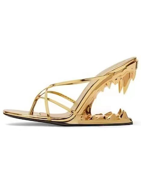 Трансграничная Внешняя торговля 2023 Chunxin Европа и США показывают женские тапочки на высоком каблуке особой формы с зубами, подиум, крест на каблуке с ветровым уклоном