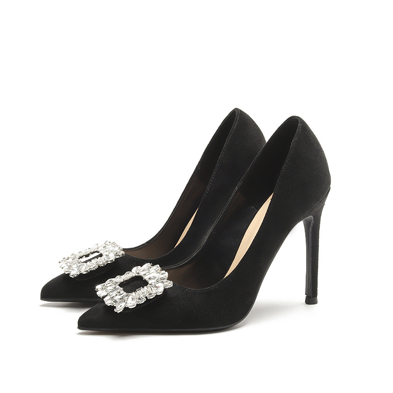 Главная страница > Новые черные замшевые туфли на высоком каблуке в Корейском стиле, женские туфли на тонком каблуке, удобные модные пикантные одиночные туфли со стразами и квадратной пряжкой для женщин