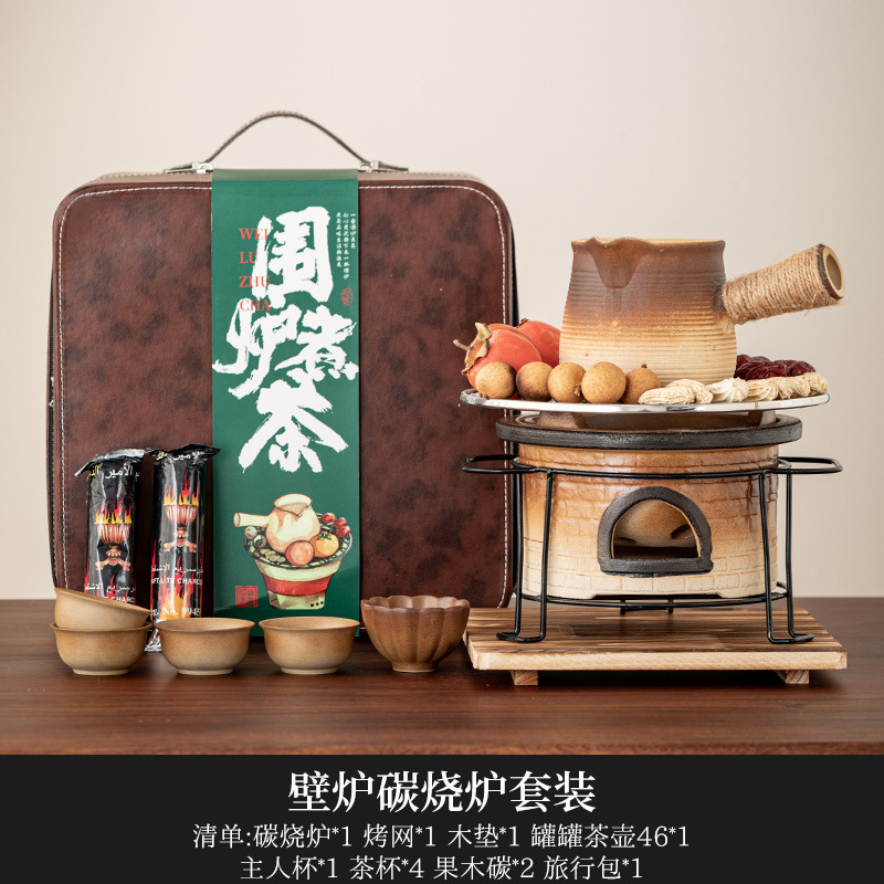 Карбоновая печь средней печи XB - полный комплект + глиняный горшок с огненным знаком небольшого размера + набор сумочек