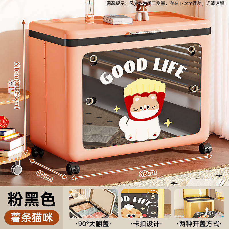 *Обновленное переднее открытие*[Апельсиново-розовый кот с картофелем фри] Запечатывается крышкой/складывается на колесах