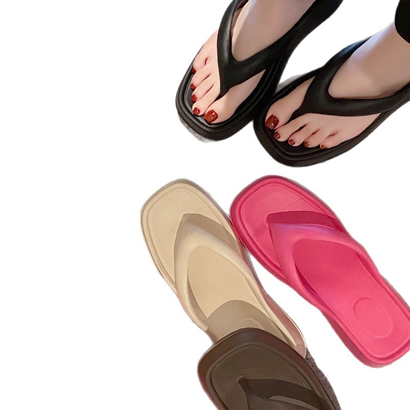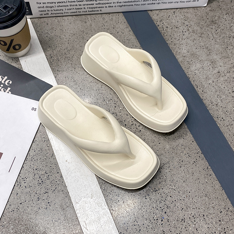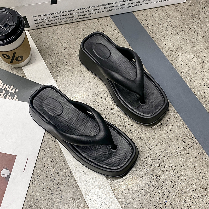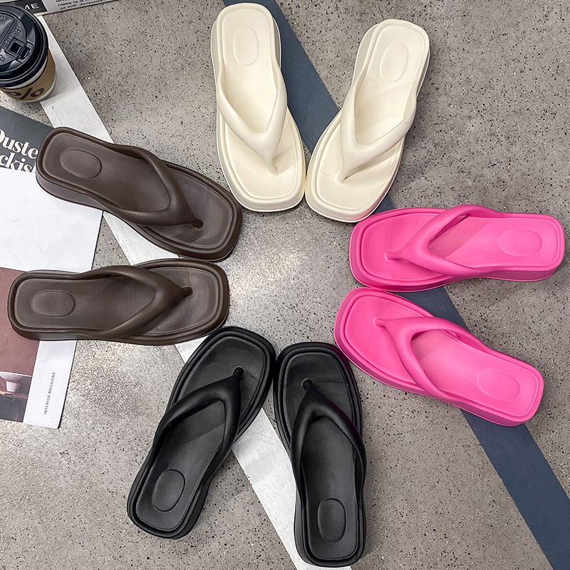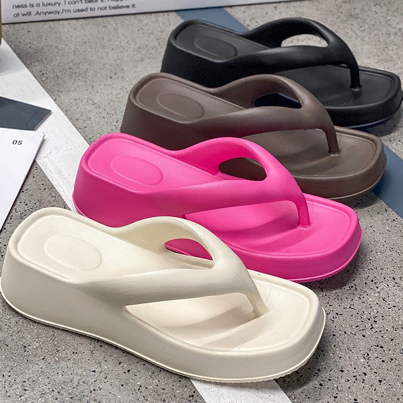 Главная страница > 2025 новых женских простых однотонных платформенных шлепанцев на среднем каблуке, модные универсальные тапочки, готовый склад с фабрики