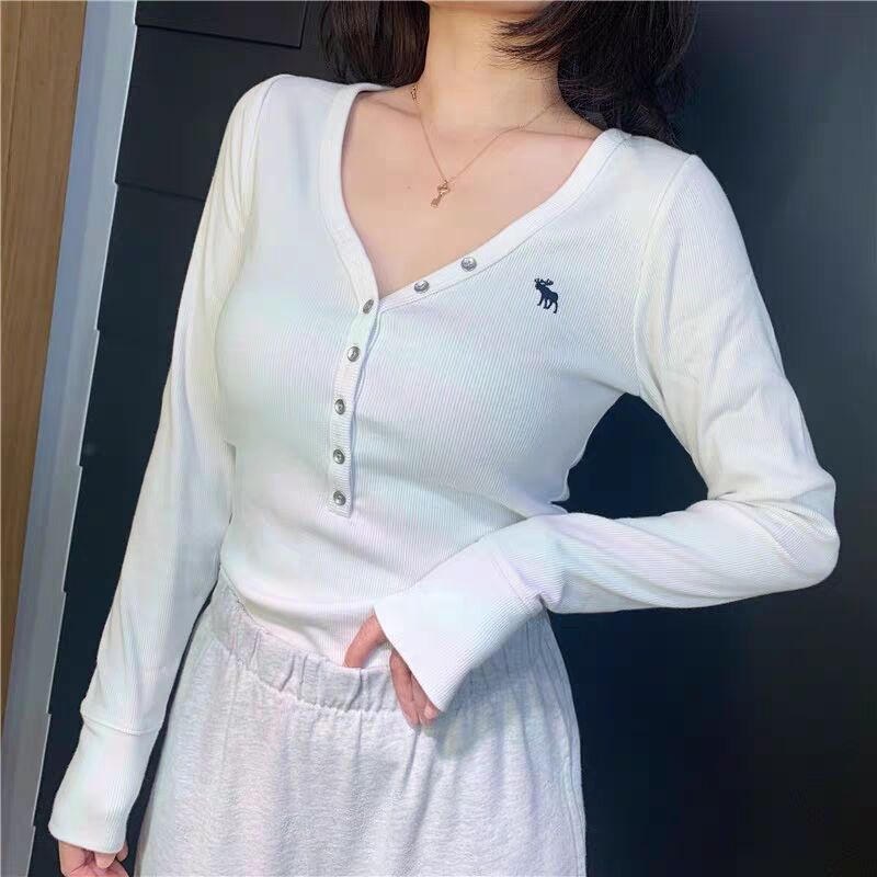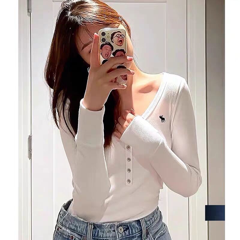 Главная страница > Футболка женская A&F, весна 2025, новый стиль, однотонная, с длинным рукавом, приталенная, с V-образным вырезом, базовая модель