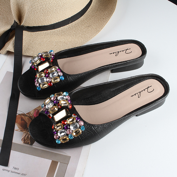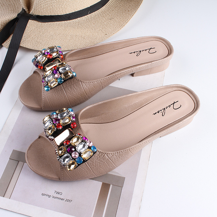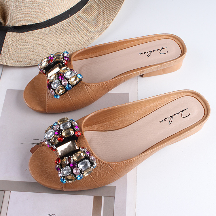 Главная страница > Очаровательная Акула, новые летние повседневные цветные тапочки с бриллиантами, модная верхняя одежда на низком каблуке, однотонные пляжные женские тапочки с открытым носком
