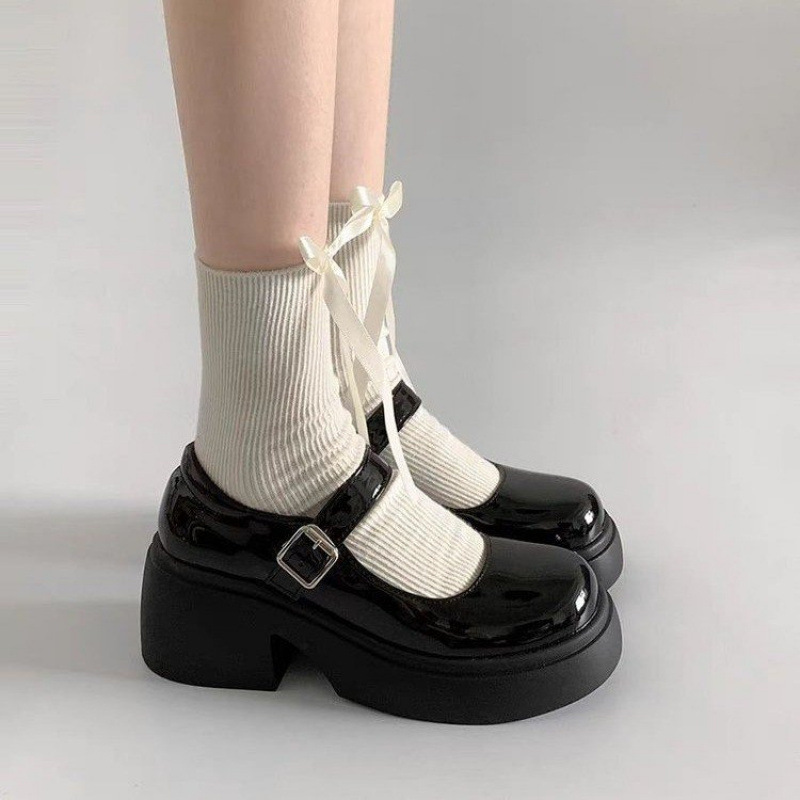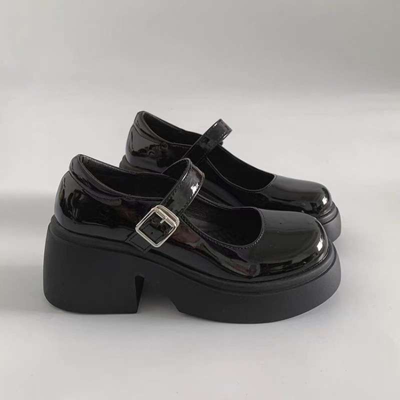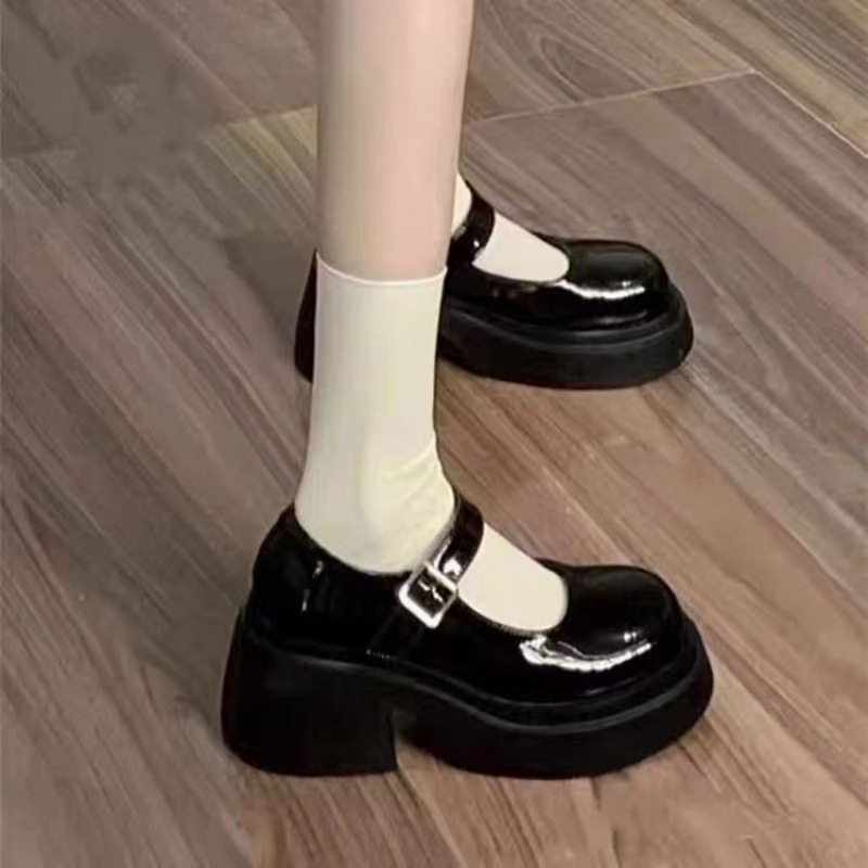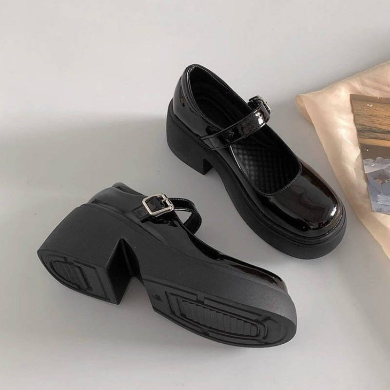 Главная страница > Черные универсальные женские кожаные туфли Мэри Джейн на высоком каблуке во французском стиле на толстой подошве, новинка весны и осени 2025 года, туфли с неглубоким носком и юбкой