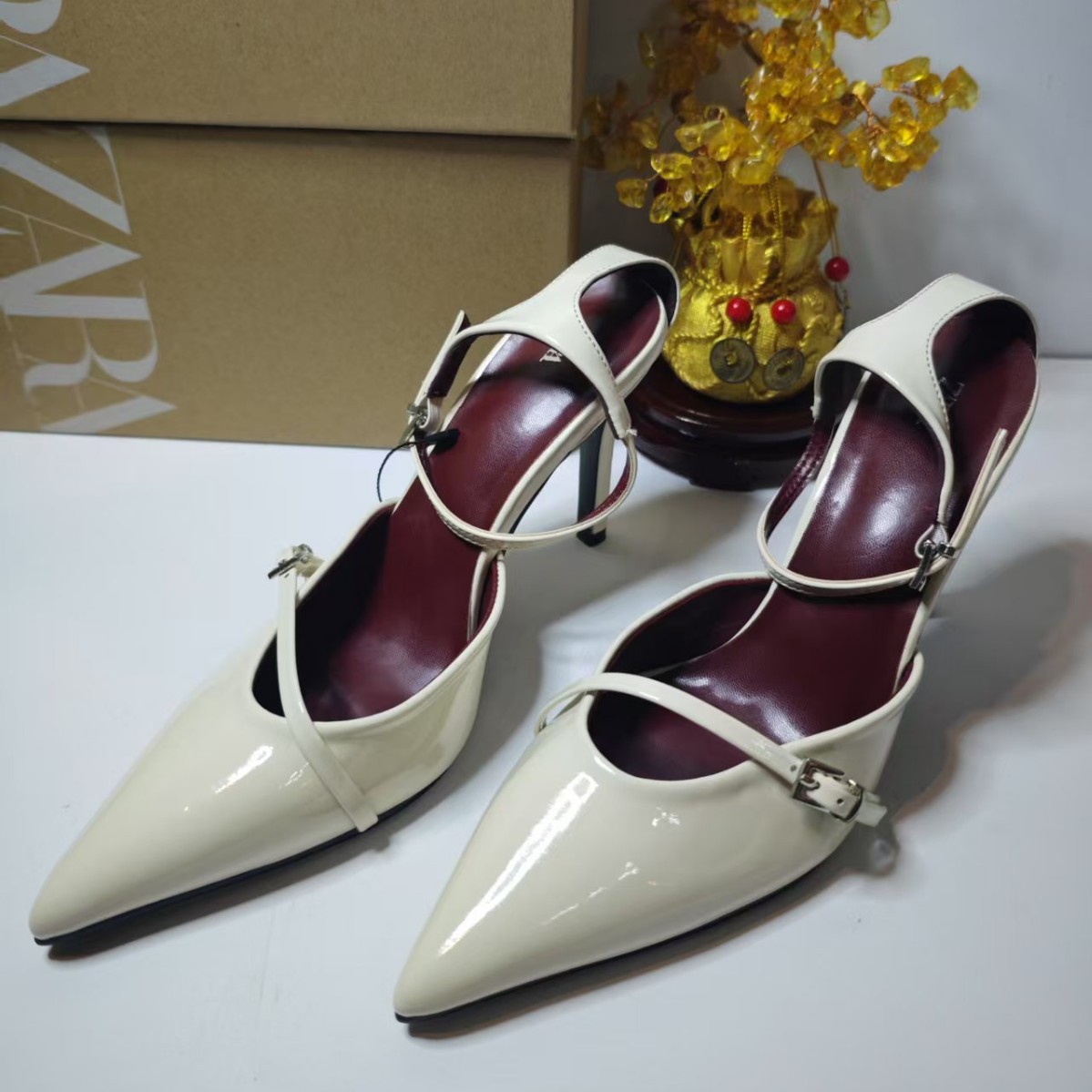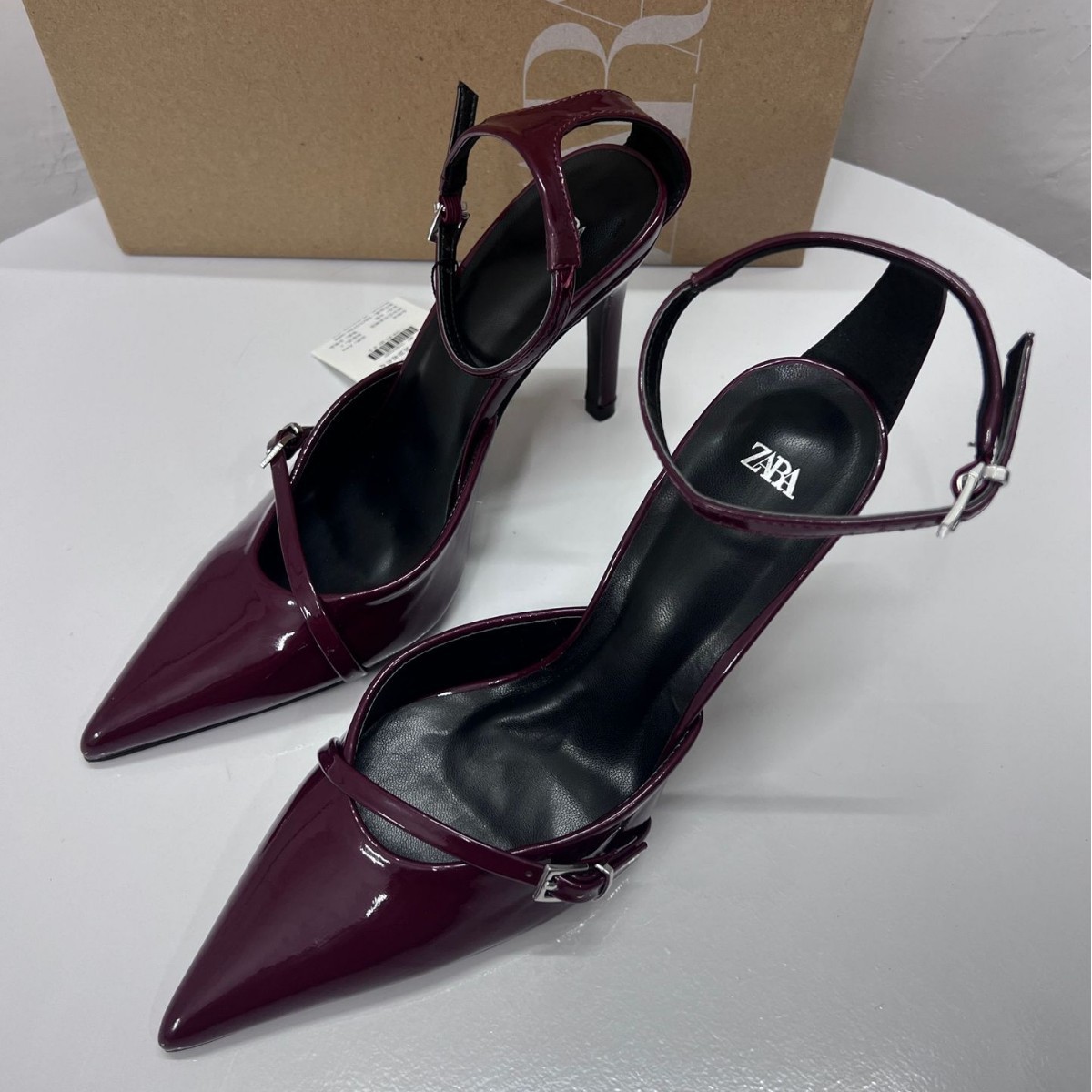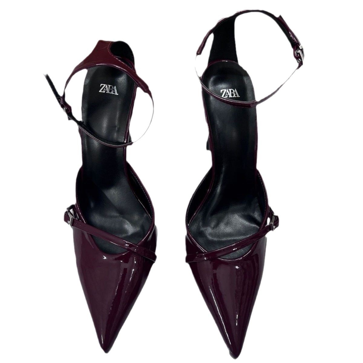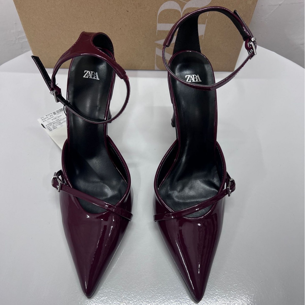 Главная страница > ZA2024 осень новая винно-красная лакированная кожа с заострением и неглубоким ртом.