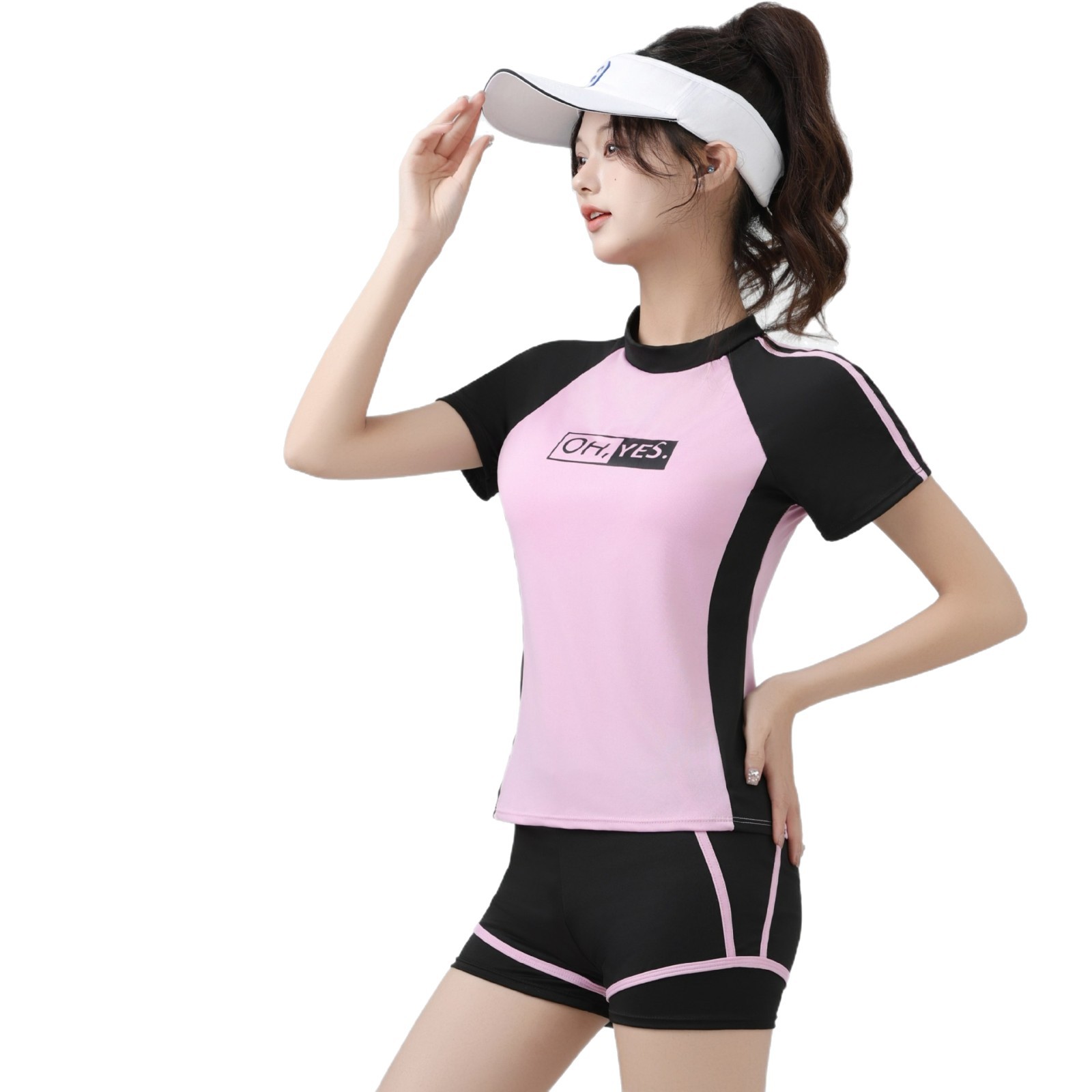 Главная страница > Женский купальник, состоящий из двух частей, спортивный, повседневный, консервативный, в корейском стиле, большого размера, закрывающий живот, для похудения, студенческий купальник с горячей весной