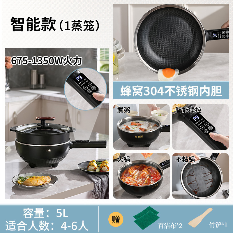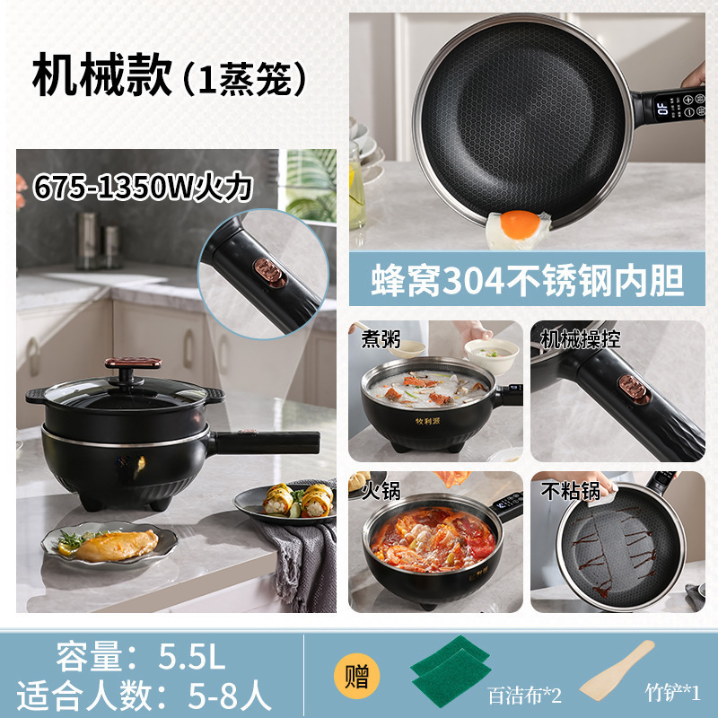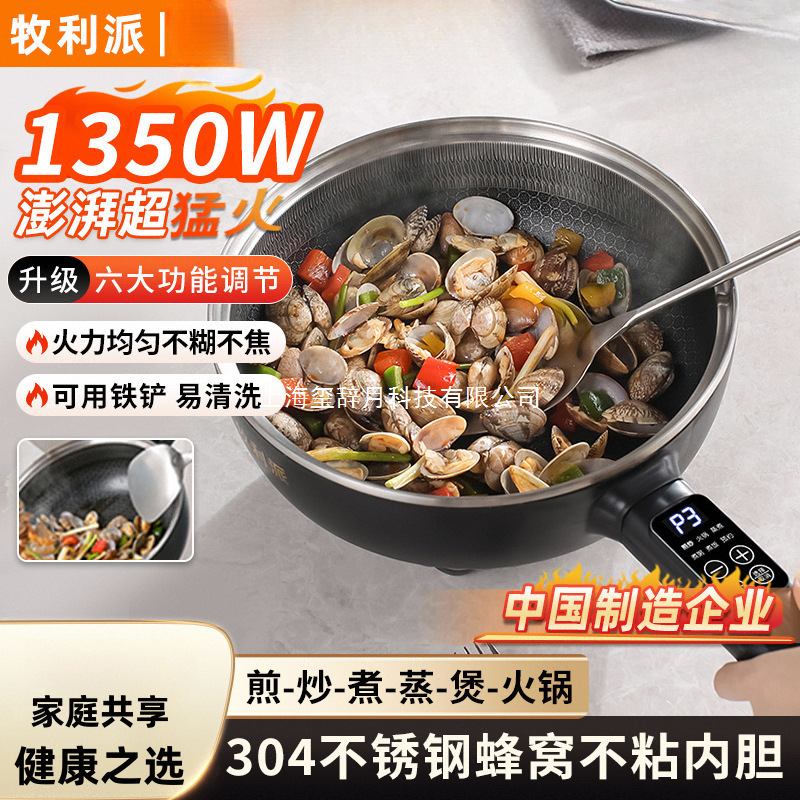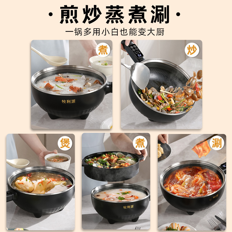 Электрический вок Muli Pai, сотовая антипригарная сковорода, многофункциональная универсальная электрическая кастрюля, бытовая электрическая кастрюля для жарки и приготовления на пару