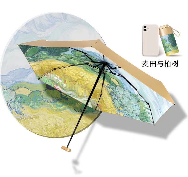 Виниловый солнцезащитный крем Ультрафиолетовый зонтик зонтик зонтик мини шестискладной зонтик масляной живописи ветер серия зонтик солнце женский лето