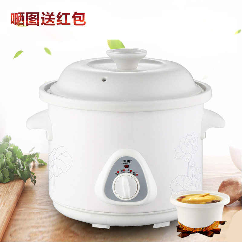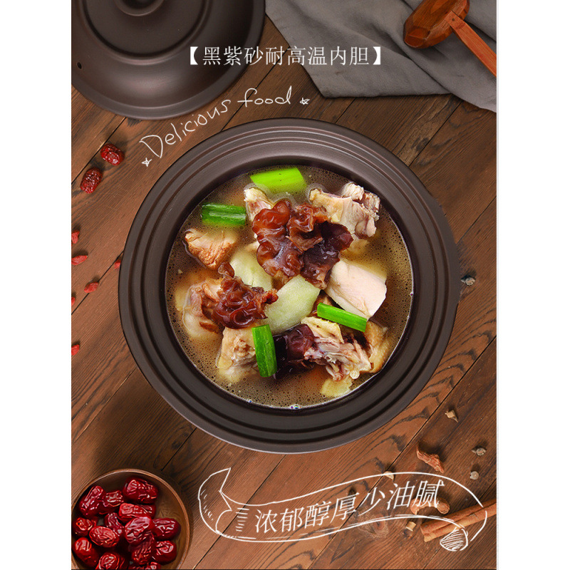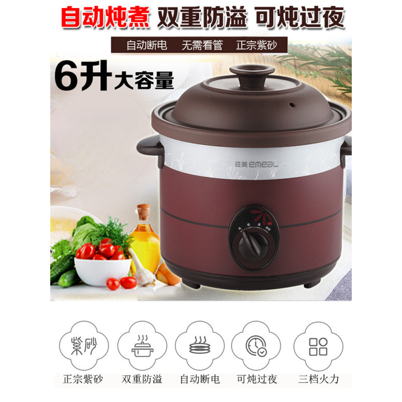 Главная страница > Бытовая электрическая кастрюля для тушения из фиолетовой глины, белая фарфоровая большая керамическая кастрюля с подключением, полностью автоматическая кастрюля для медленного тушения, кастрюля для каши, супа, 6 л
