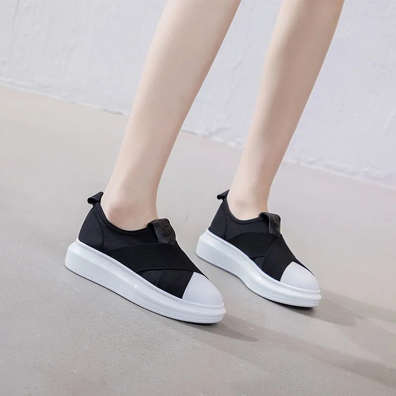 Главная страница > Повседневные белые женские туфли без шнуровки, весна-осень 202, популярные универсальные эластичные женские туфли на толстой подошве с повышением Loaf