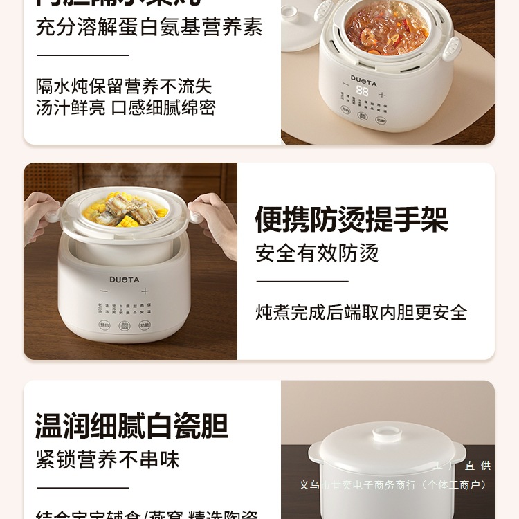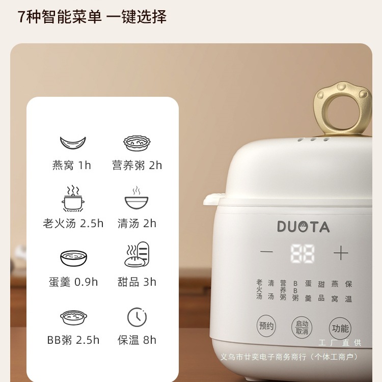 Главная страница > Электрическая кастрюля для тушения, кастрюля для тушения птичьего гнезда, керамическая кастрюля для супа, кастрюля для каши, водонепроницаемая кастрюля для тушения, маленькая кастрюля для тушения, бытовая, от 1 до 2 человек