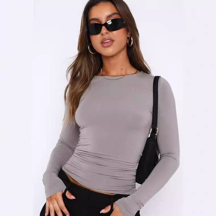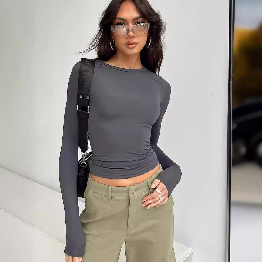 Главная страница > Европейская и американская одежда, однотонная футболка, тонкий пуловер, повседневная женская уличная рубашка с длинными рукавами, топ, весенне-осенний пуловер
