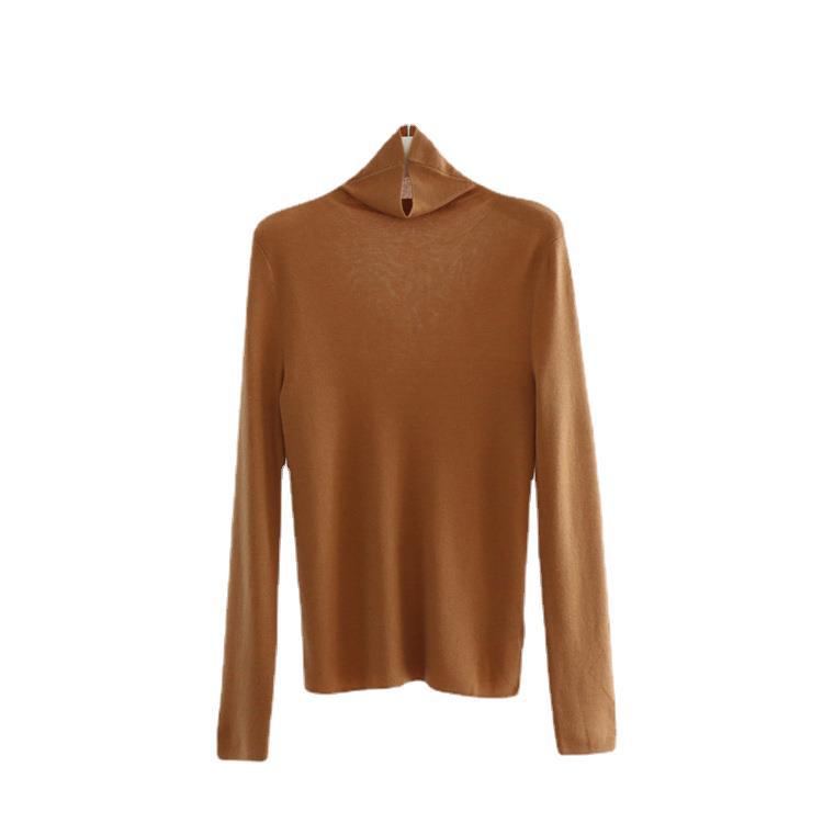 Главная страница > Ультратонкая шерсть с высокой шеей вязаная рубашка с наборным воротником женские Топы Тонкий Топ Тонкий внутренний стержень CHIC