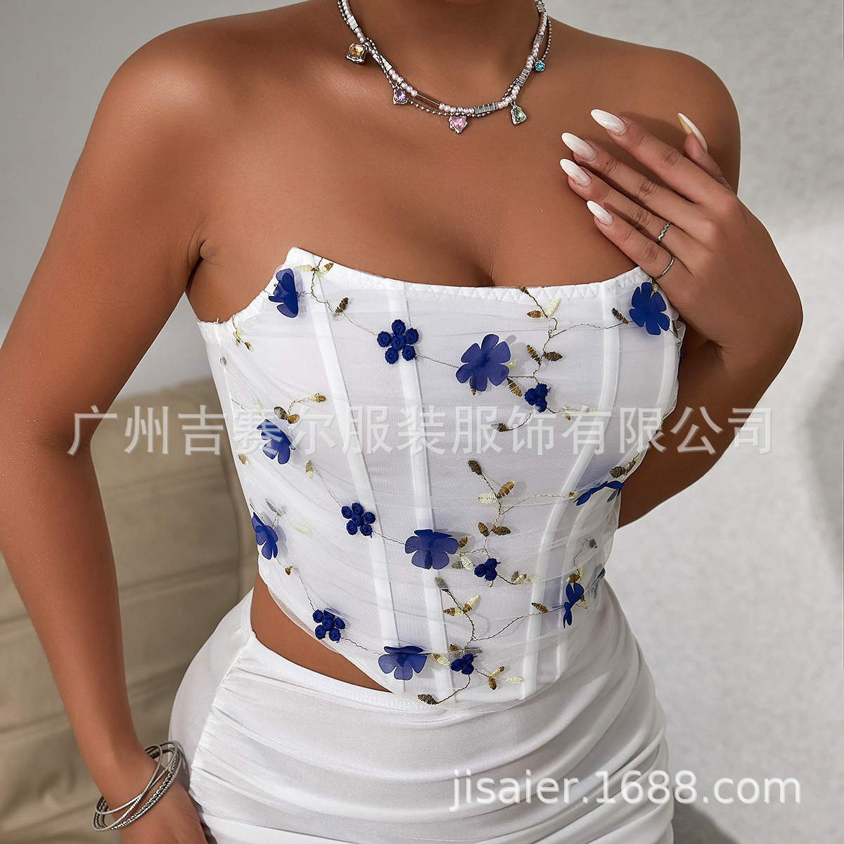 Главная страница > Новая уличная мода в европейском и американском стиле, горячий стиль, стиль, цветочная вышивка, сетка в виде рыбьей кости, короткая верхняя одежда, топ-труба 60650