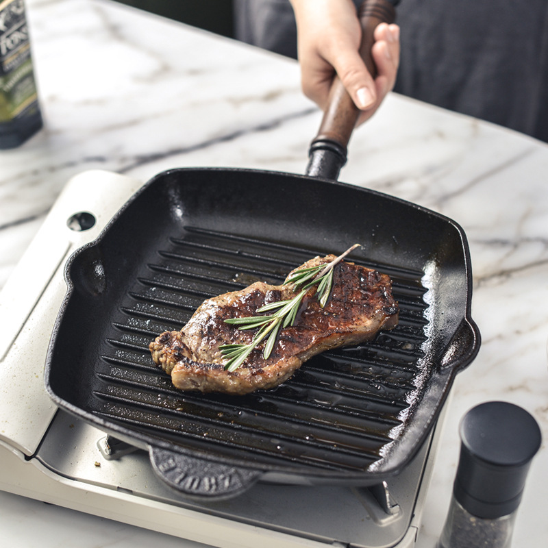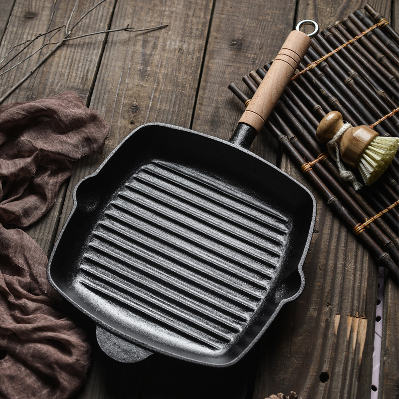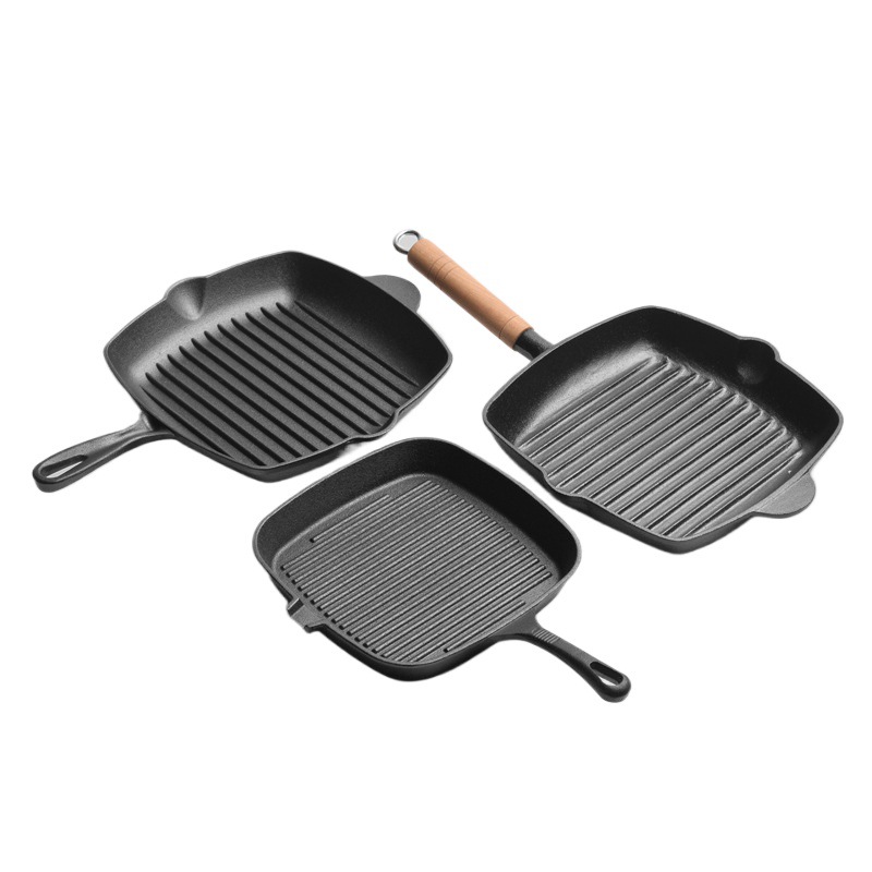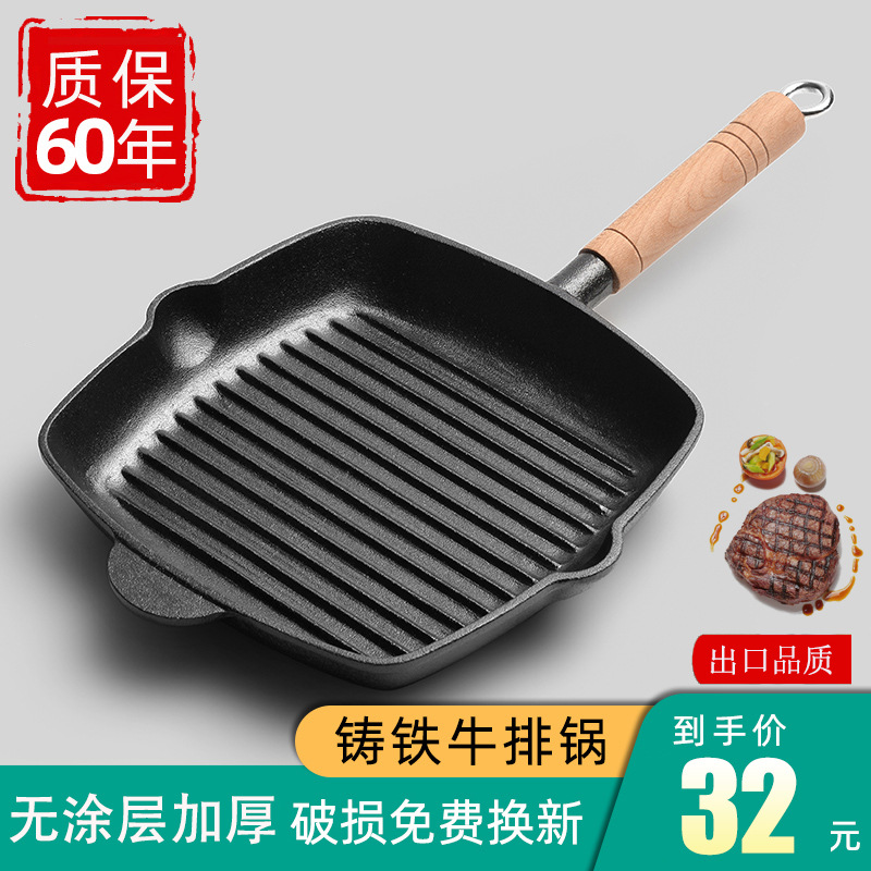 Главная страница > Оптовая чугунная сковорода для стейков Бытовая полосатая сковорода для стейков Утолщенная сковорода без покрытия с антипригарным покрытием, специальная для жарки стейков
