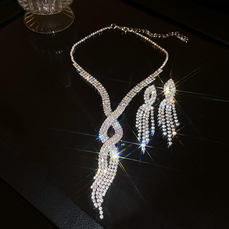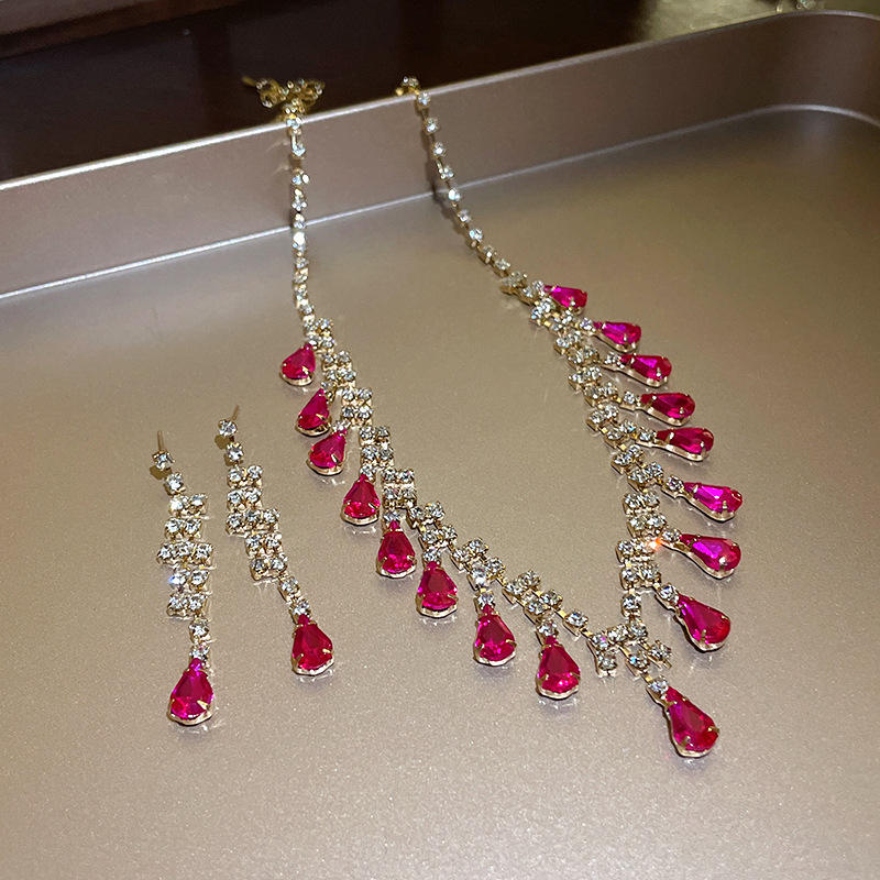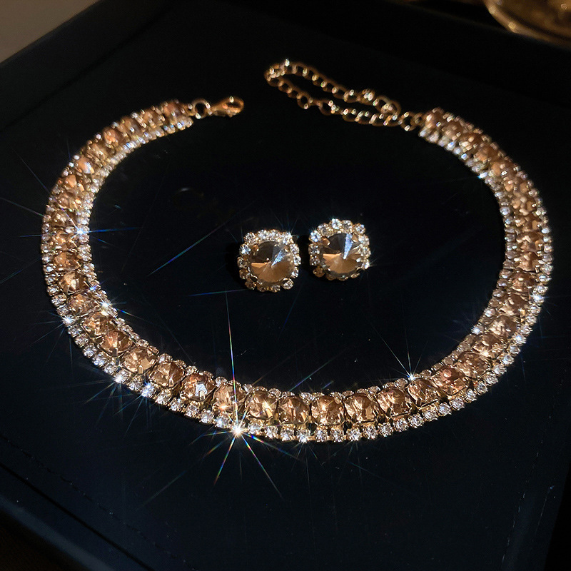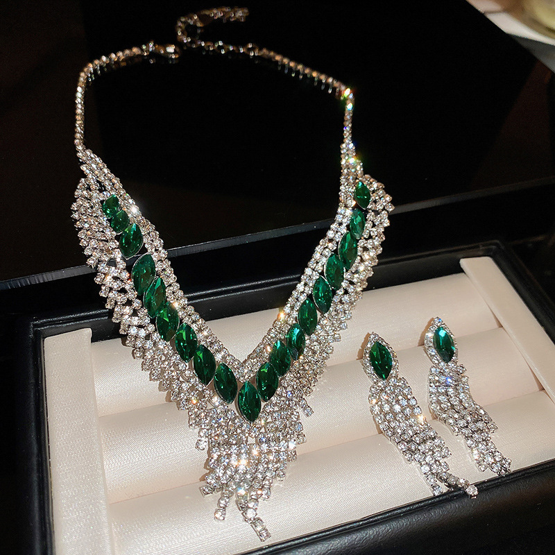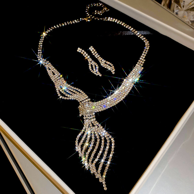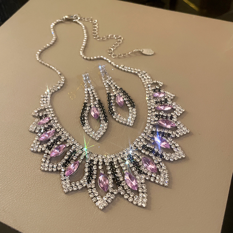 Главная страница > Европейские и американские трансграничные стразы капли ожерелья Серьги Комплект легких экстравагантных ключиц высокого класса нишевые дикие ювелирные изделия оптом