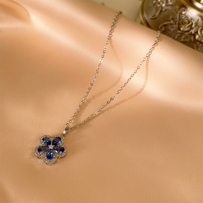 70#Колье-сапфир синий-квадрат (комплект из двух предметов)