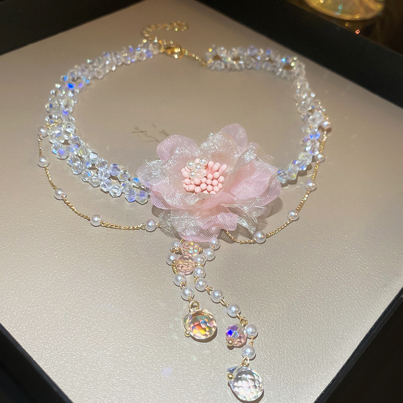 52#Ожерелье-розовый капля воды (комплект из двух предметов)