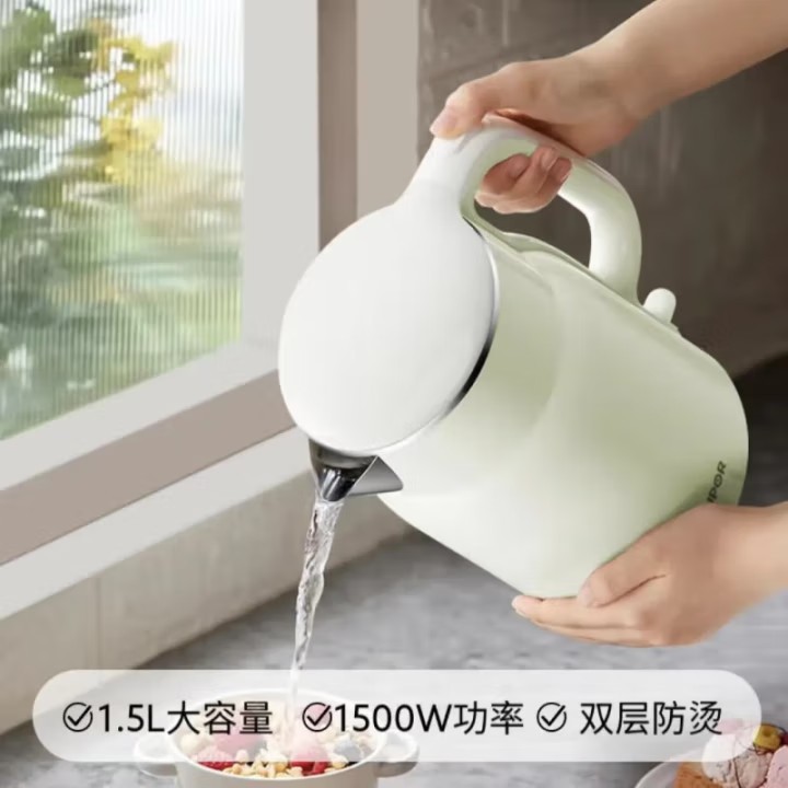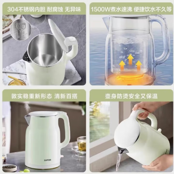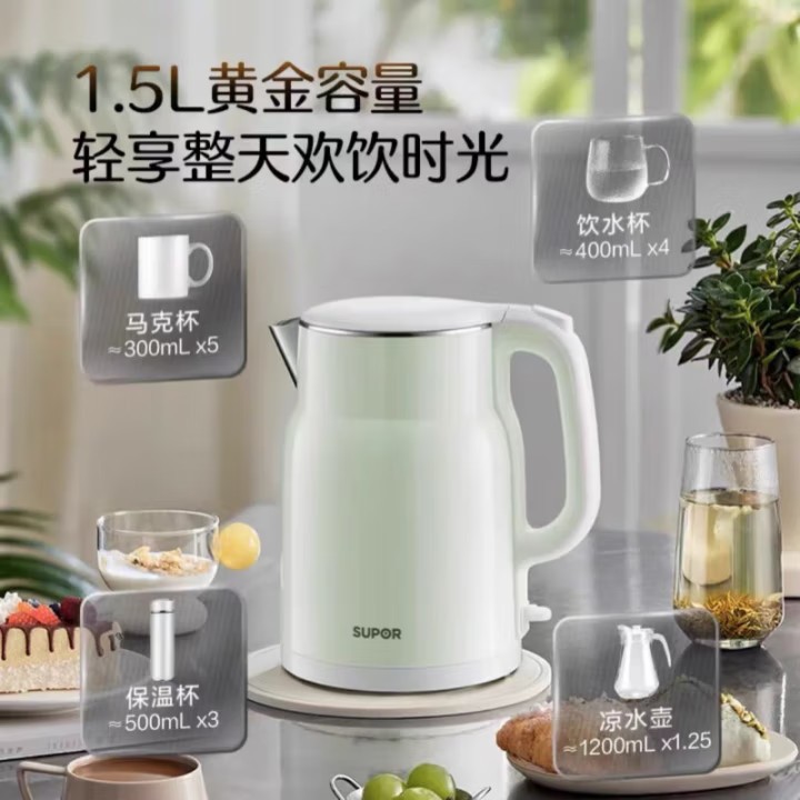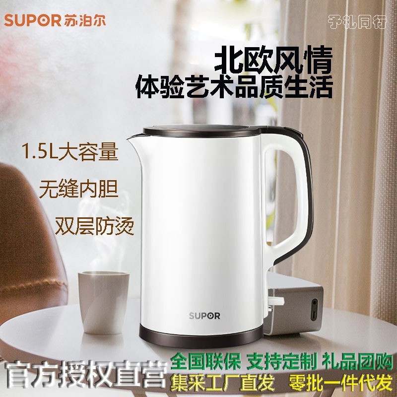 Главная страница > Электрический чайник Supor, новый бытовой коммерческий 1,5 л, красивый маленький полностью автоматический двухслойный чайник с защитой от ожогов