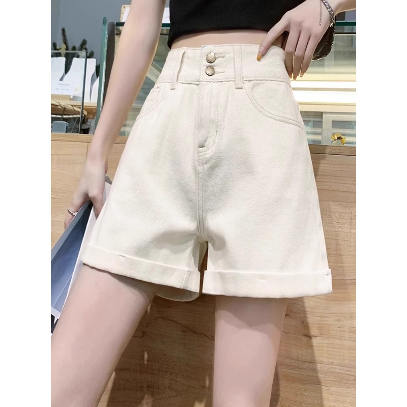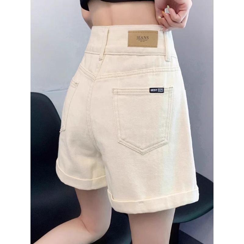 Женские джинсовые шорты цвета «слоновая кость», летний тонкий фасон, новая модель, свободный крой, стройнящие, А-силуэт, с очень высокой талией, с подвернутым краем, укороченные шорты.