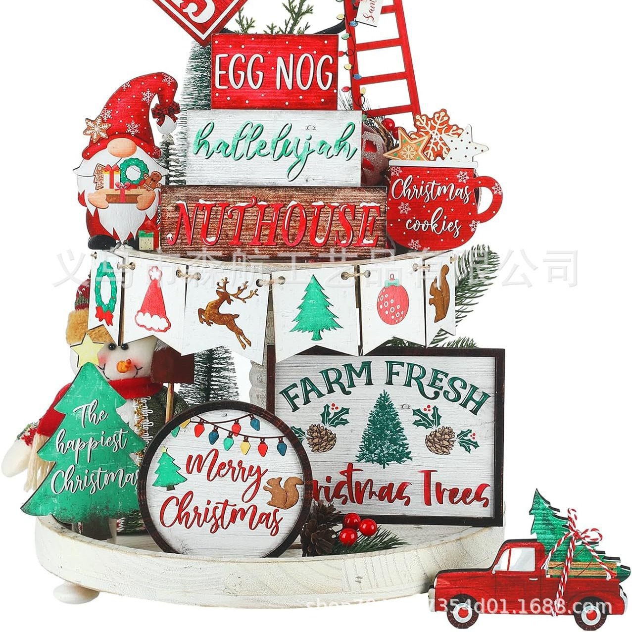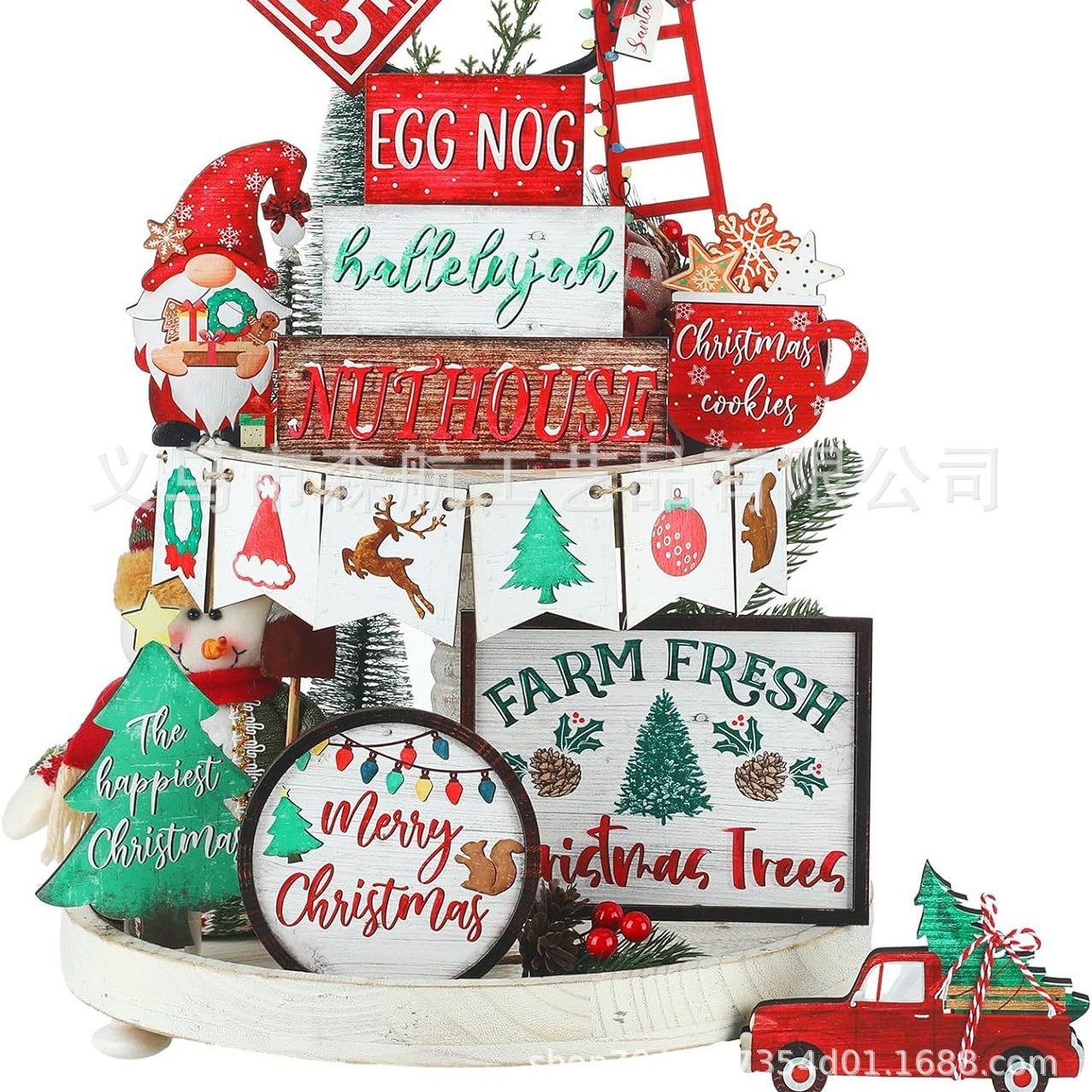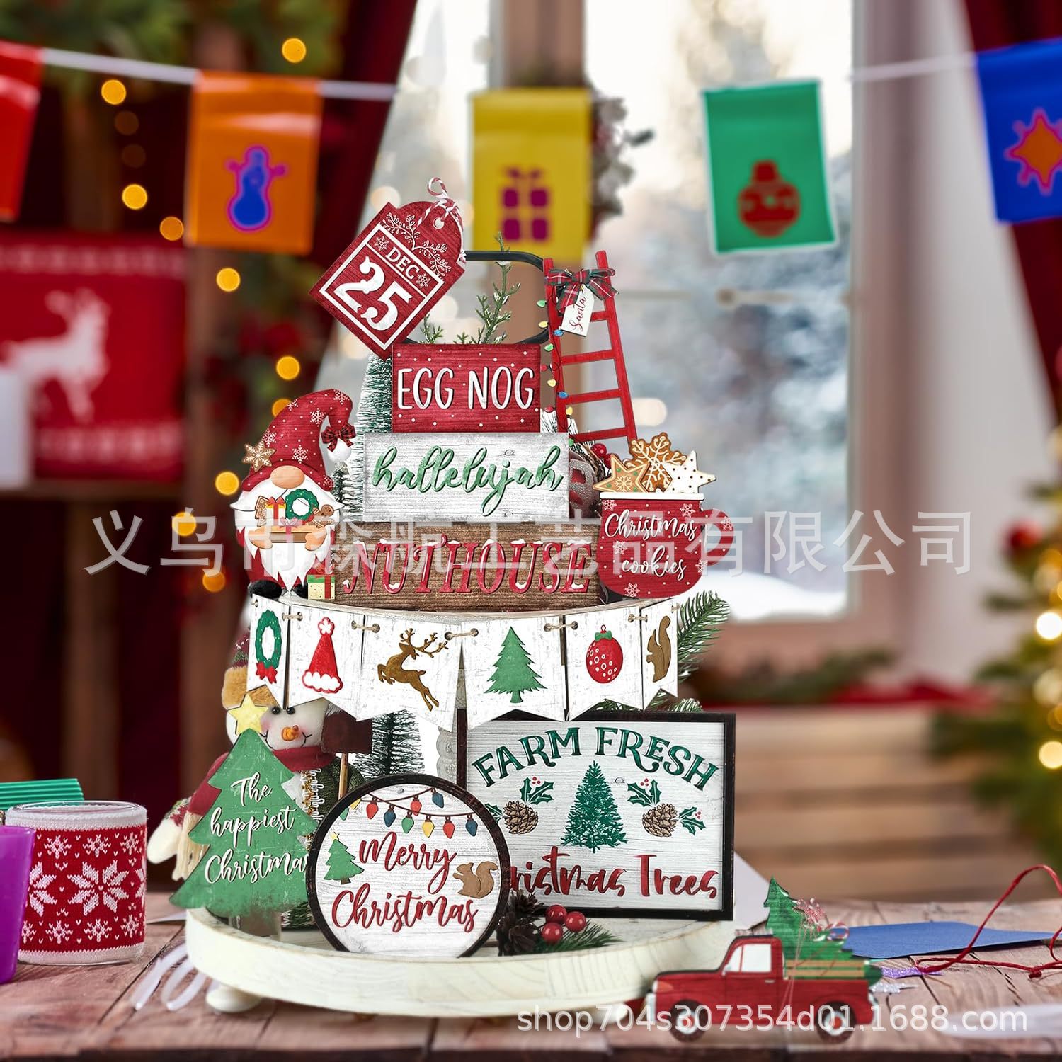 Главная страница > 15 шт. Рождественский многослойный поднос декоративный набор деревенский дом елка снежинка настольный логотип для рождественской вечеринки