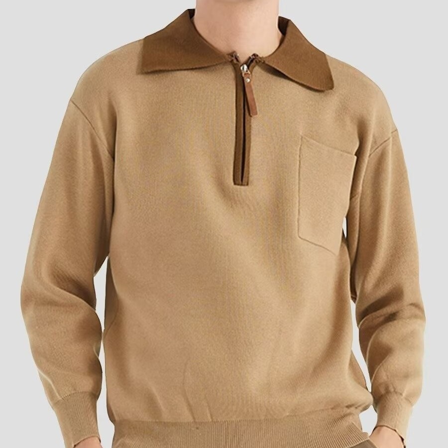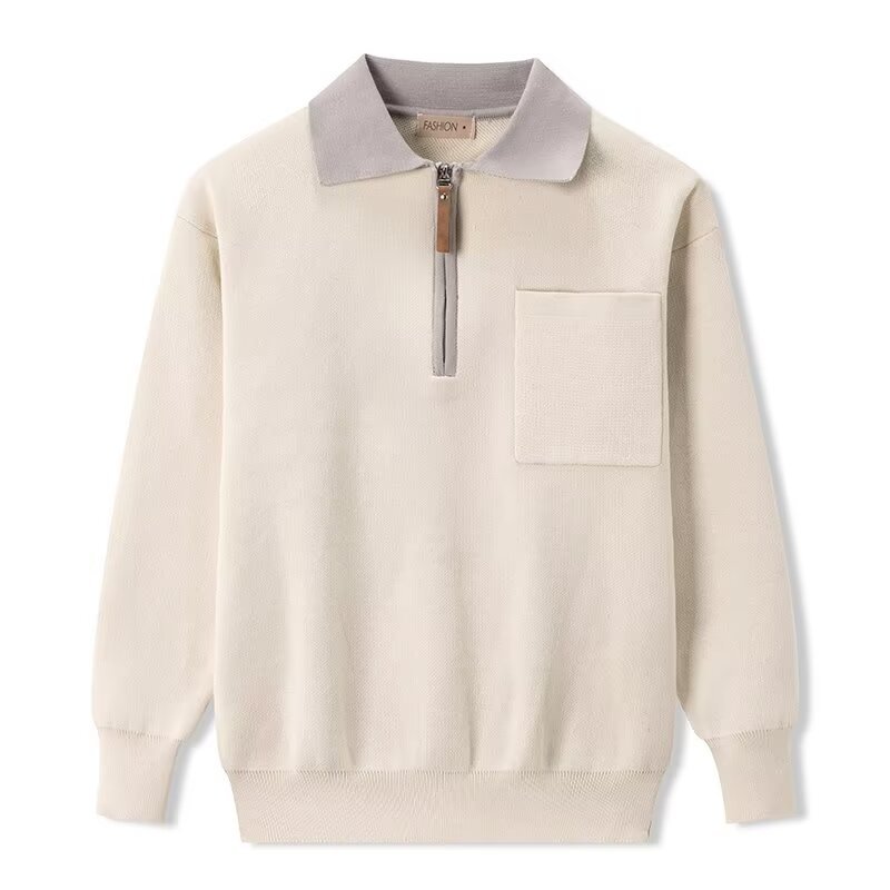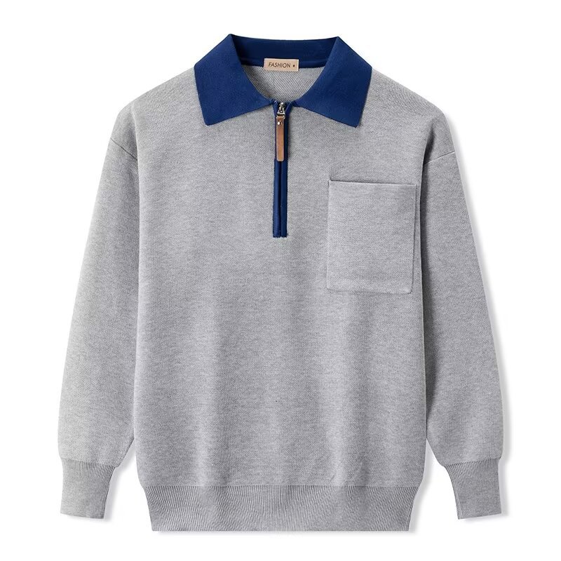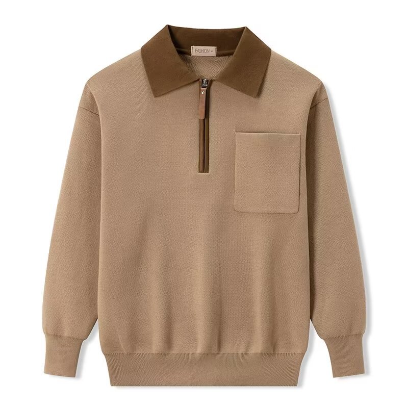 Главная страница > Тяжелый свитер-пальто 500 г, мужской осенний корейский модный бренд, свитер с короткой молнией, Повседневная рубашка-поло среднего возраста с длинным рукавом