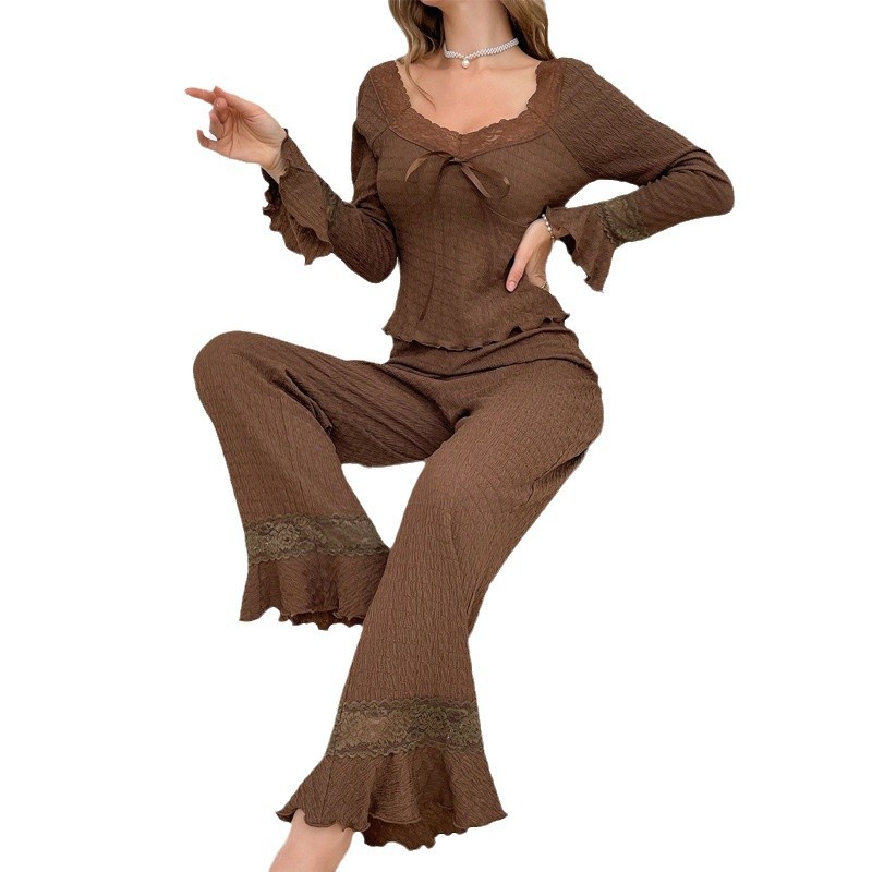 Главная страница > Трансграничная милая кружевная пижама, женский костюм, весенне-осенний новый европейский и американский стиль, элитная домашняя одежда с бантом, комплект из двух предметов