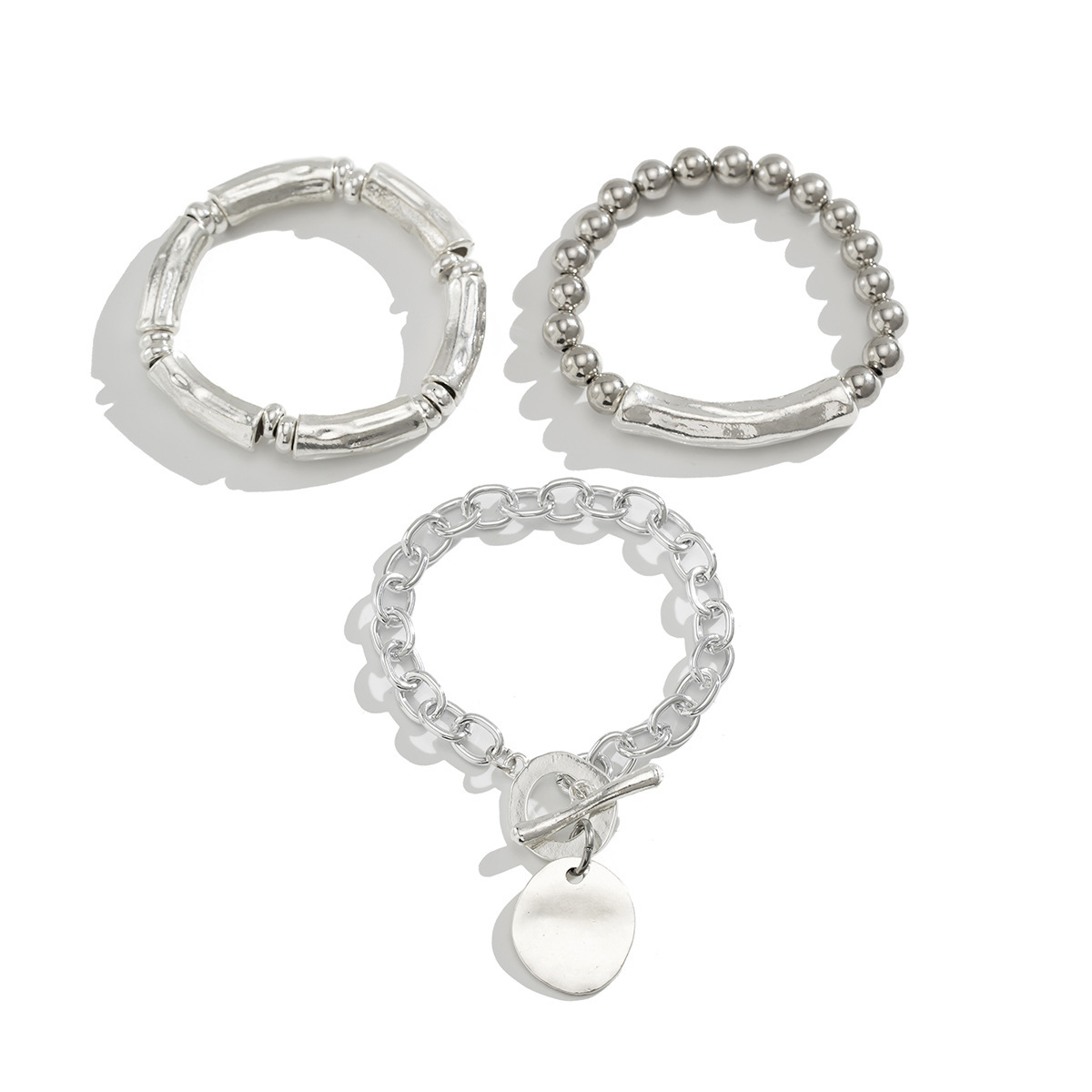 Главная страница > Европейский и американский трансграничный браслет-подвеска в форме замка в стиле панк, персонализированный металлический эластичный браслет с локтем и бисером для женщин